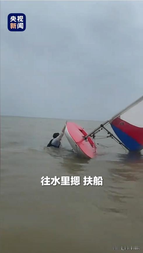 “这位教练火了!”近日,广东深圳,一名10岁男孩在雨中参加帆船训练时意外翻船,男