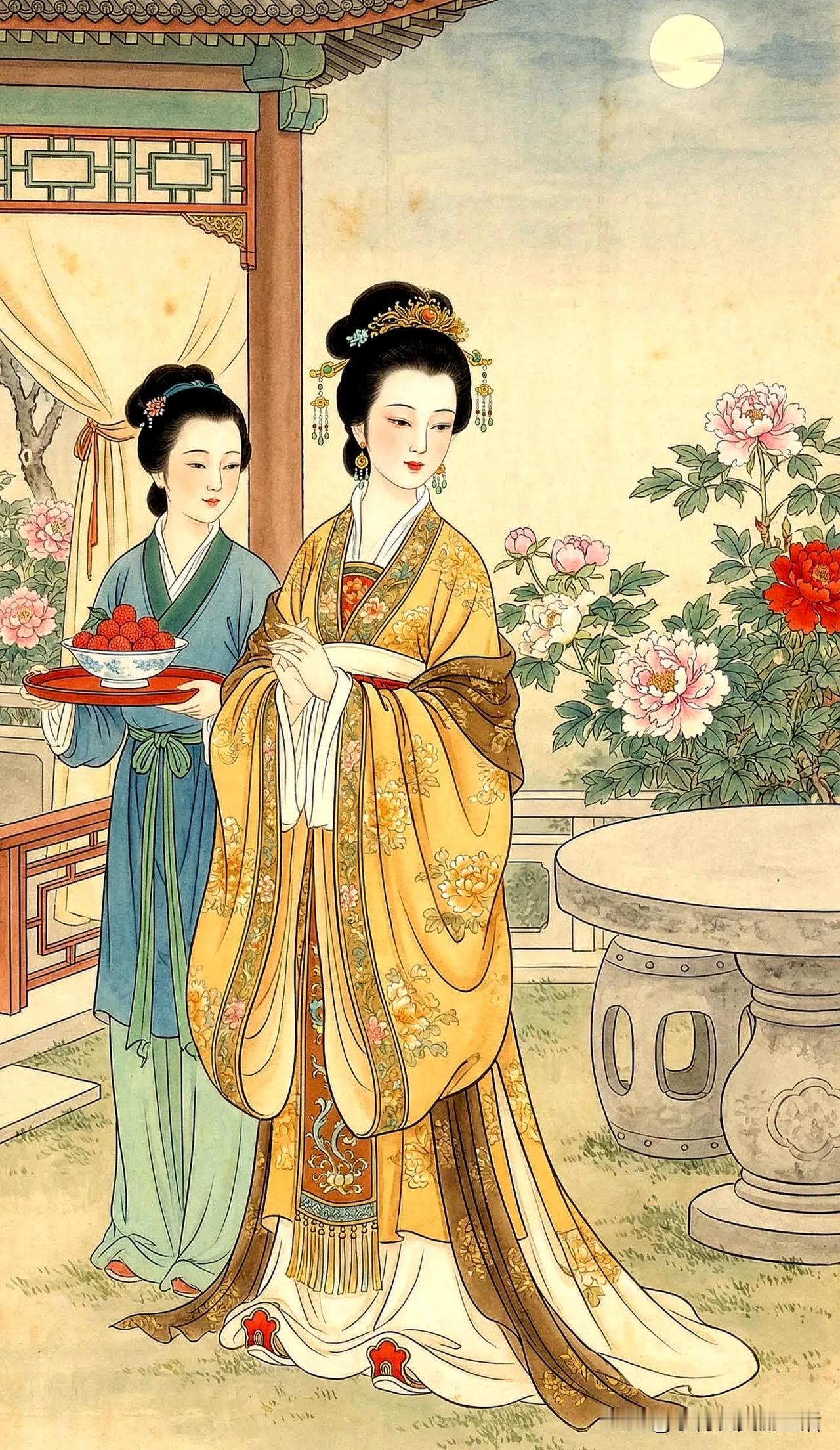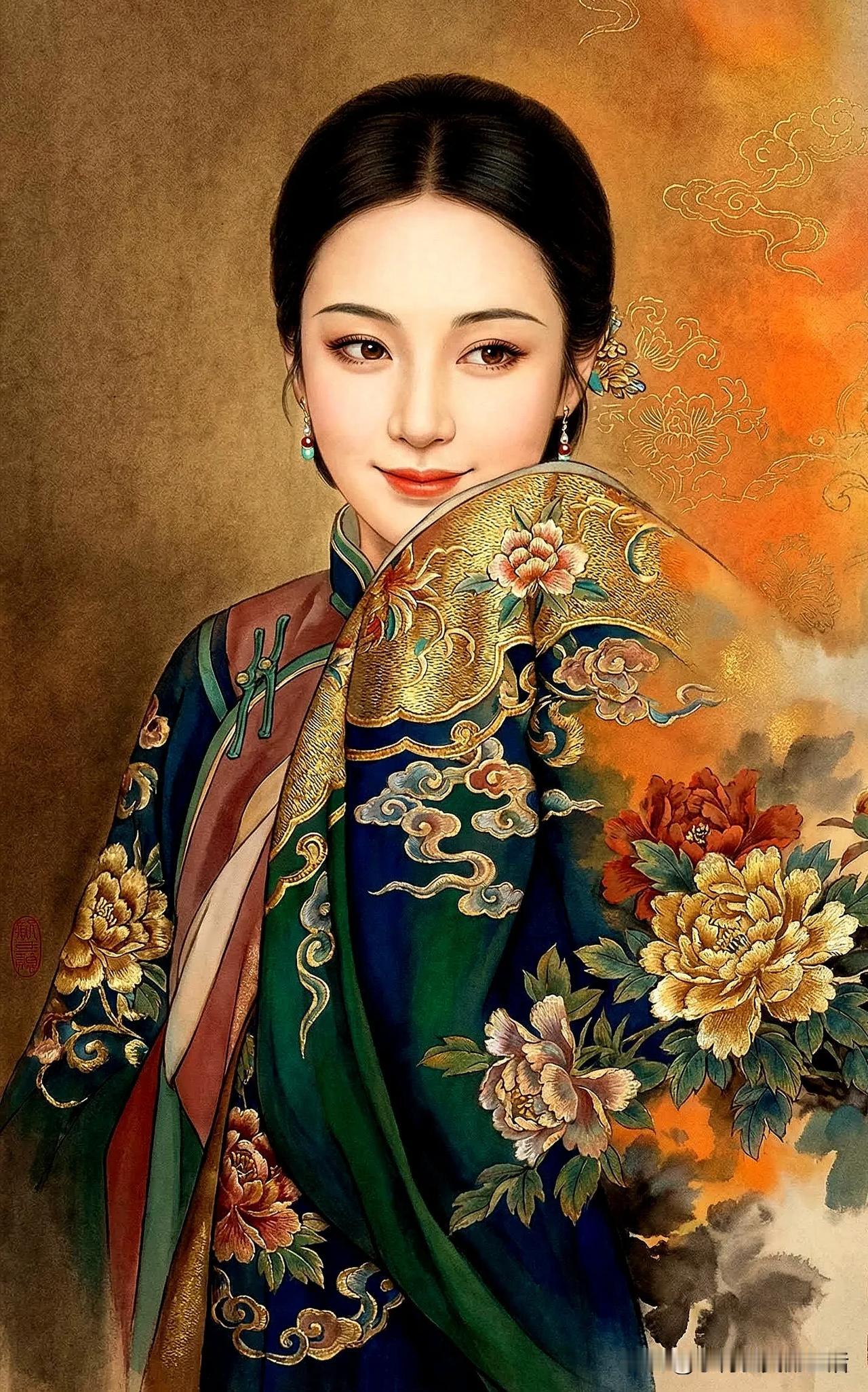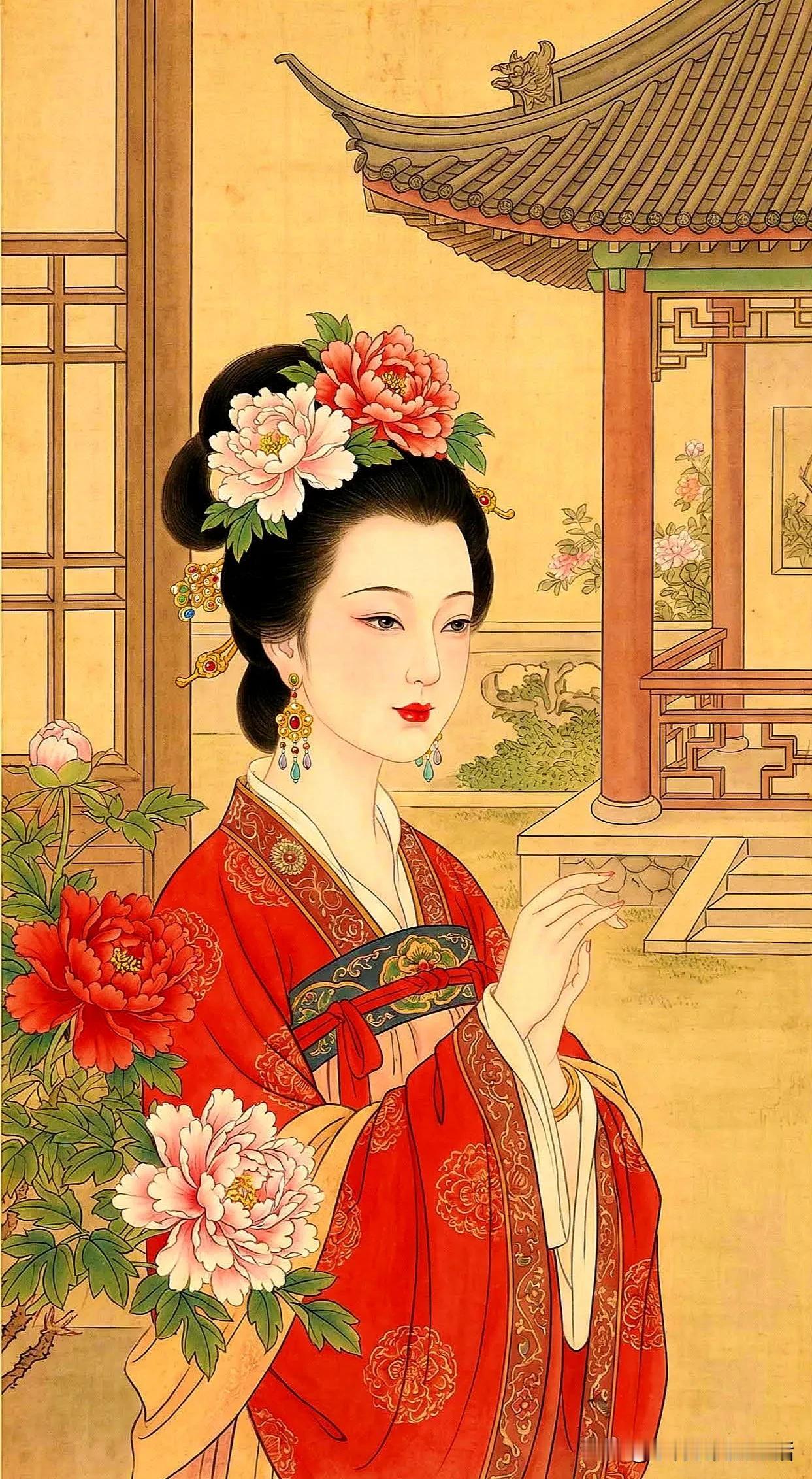 金衣美人倚花丛,笑语如花映春风。