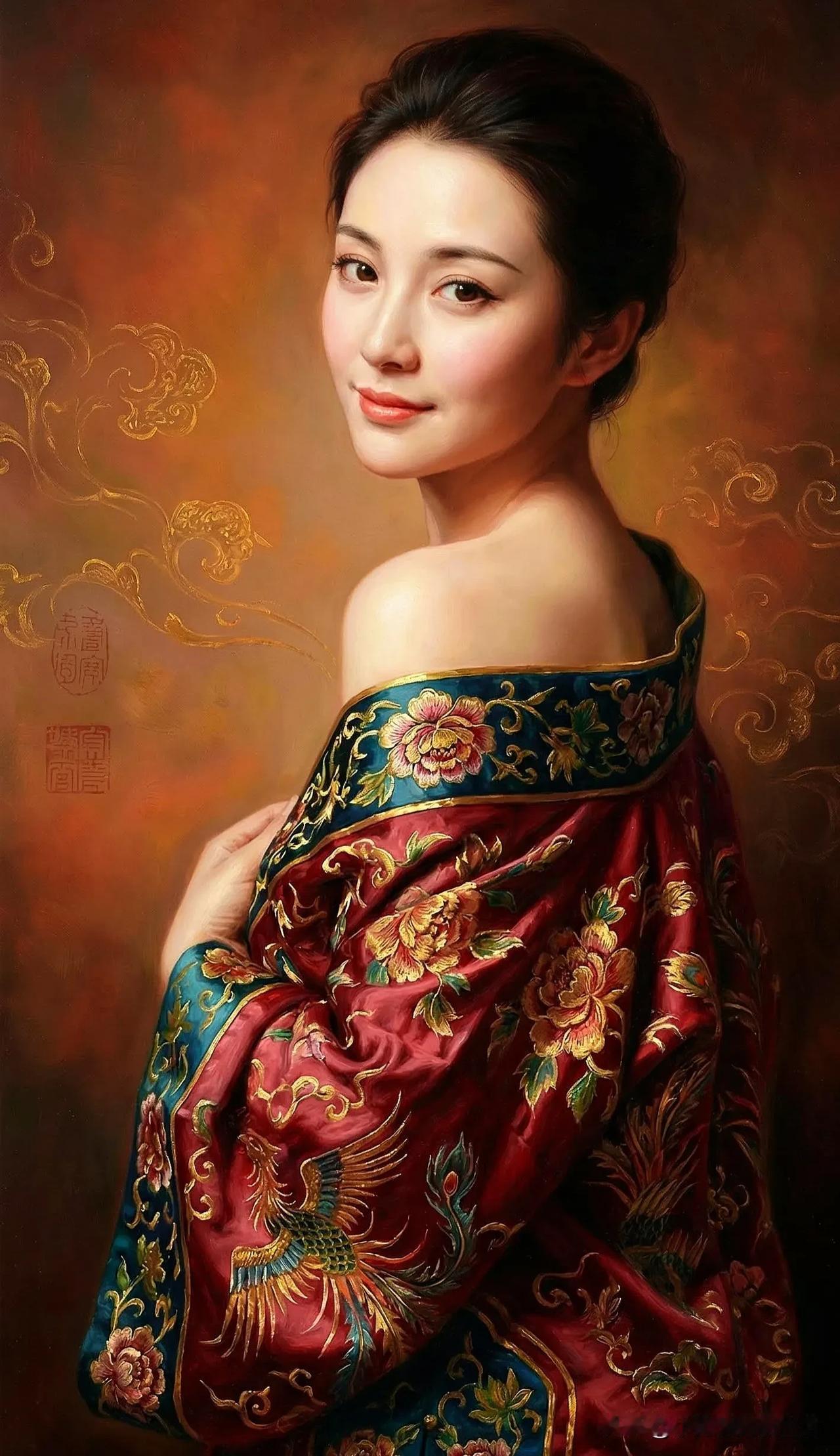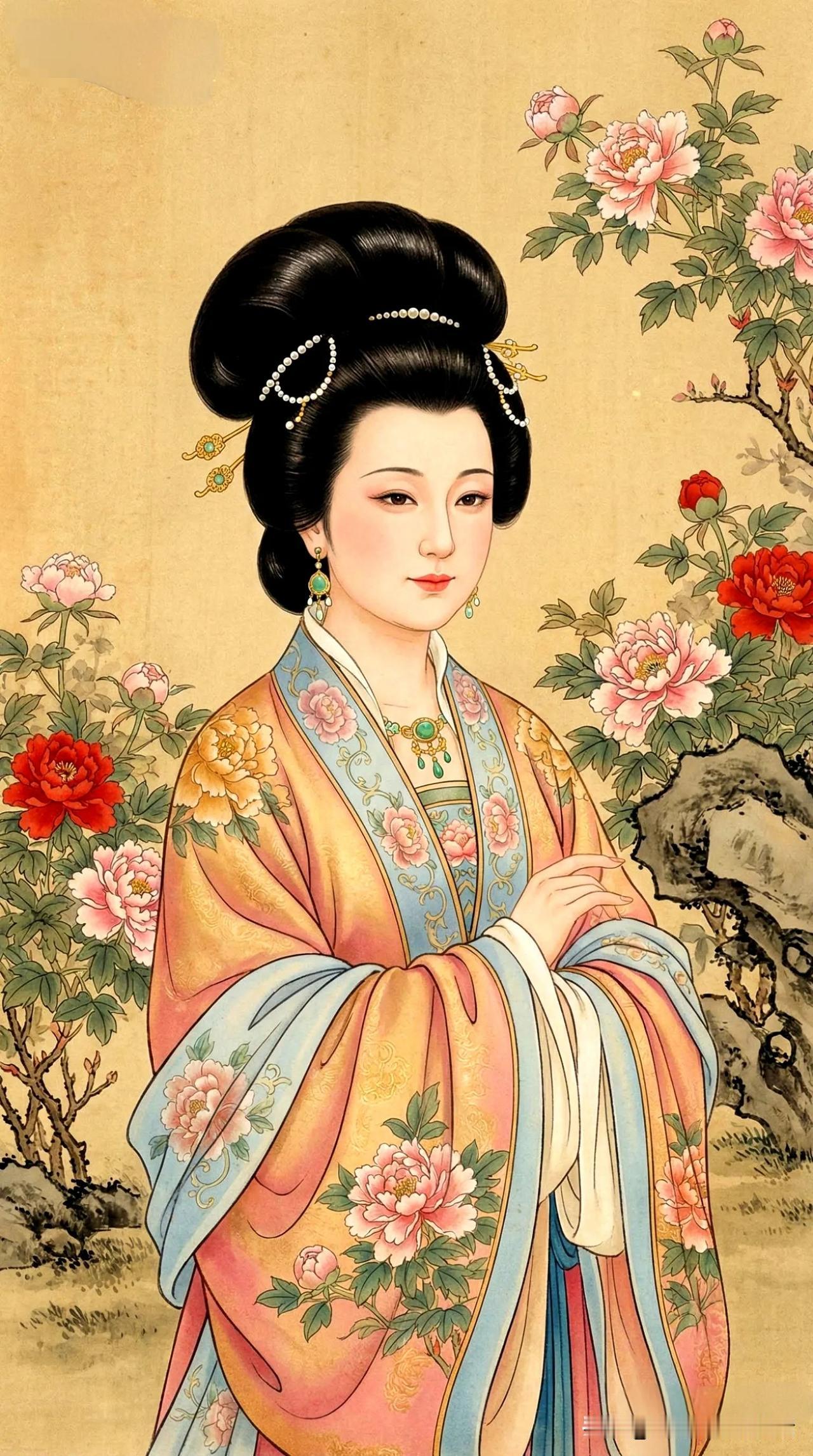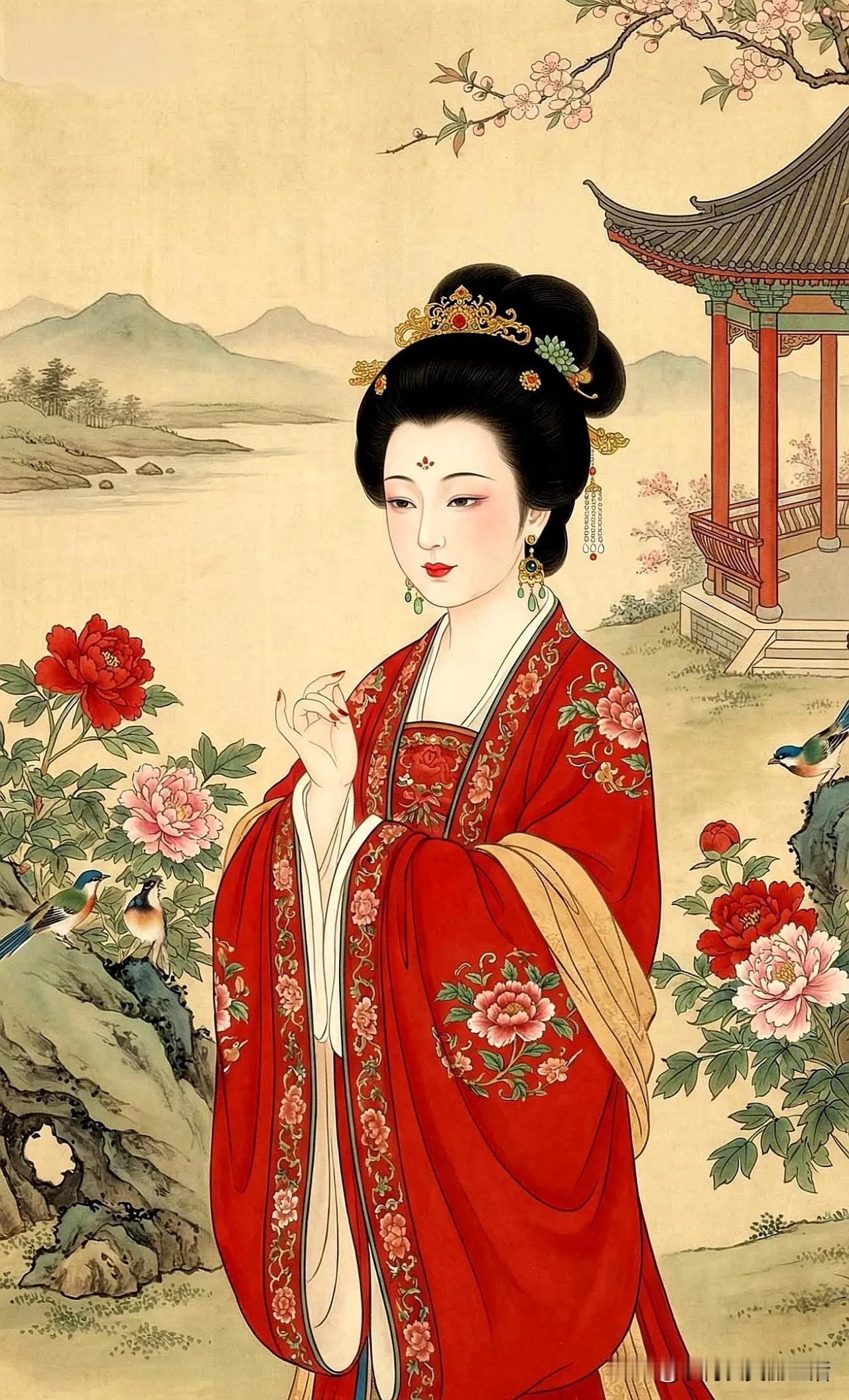 金衣美人倚花丛,笑语如花映春风。