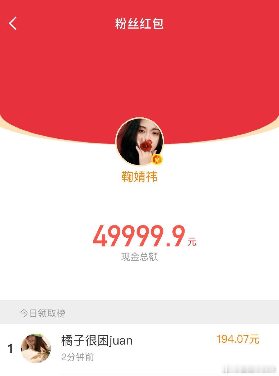 鞠婧祎20万红包鞠婧祎就这样默默的发大红包!她真的好爱她粉丝