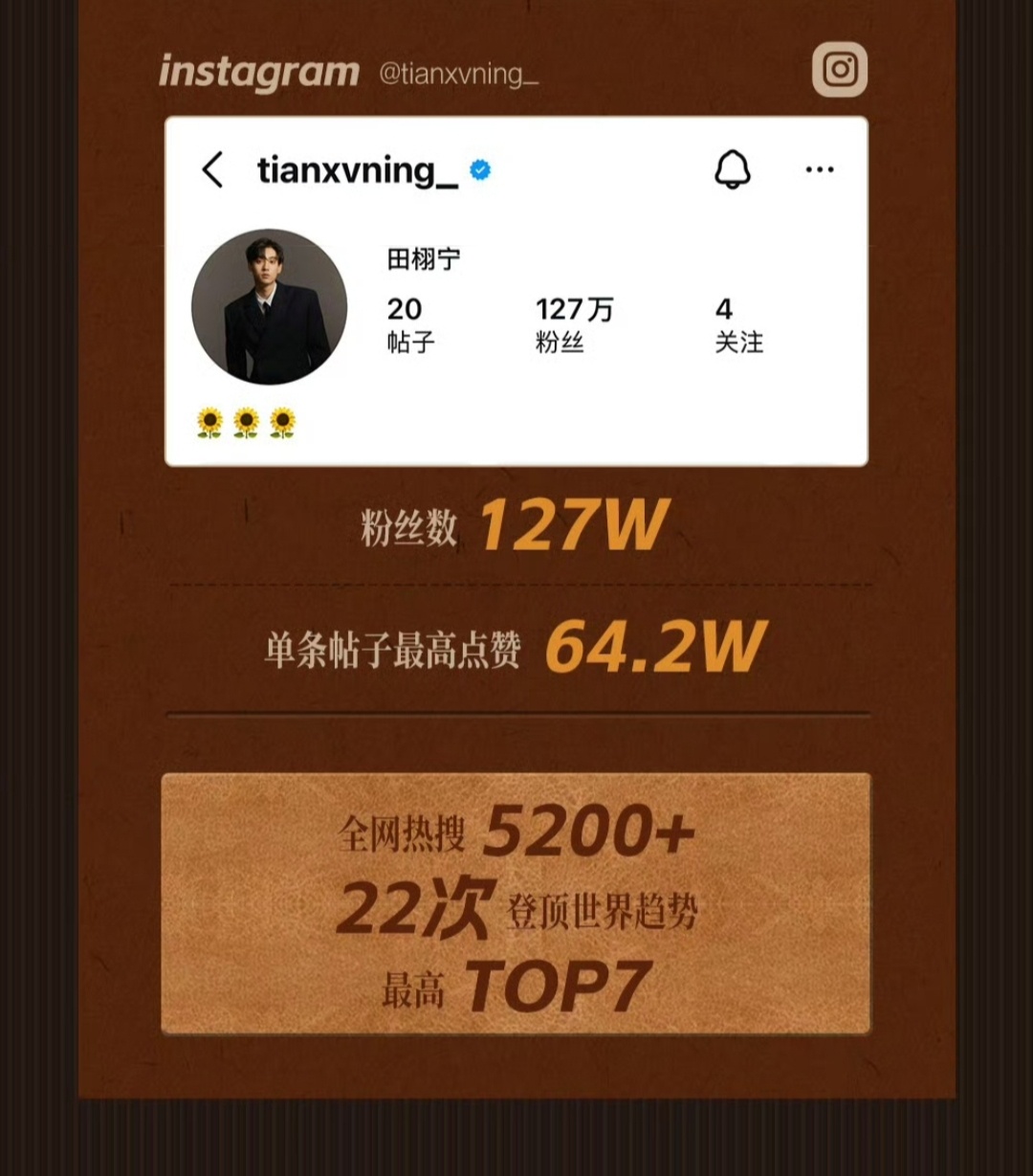 音乐——《光焰》个人首支生日单曲!数据——全平台涨粉1206.8w!全网热搜5200+!22次登顶世界趋势!奖项——微博年度星光人物入围+《光焰》微博网友年度喜爱音乐!2026交给时间,未完待栩!田栩宁全平台涨粉1206.8w田栩宁2025年度报告