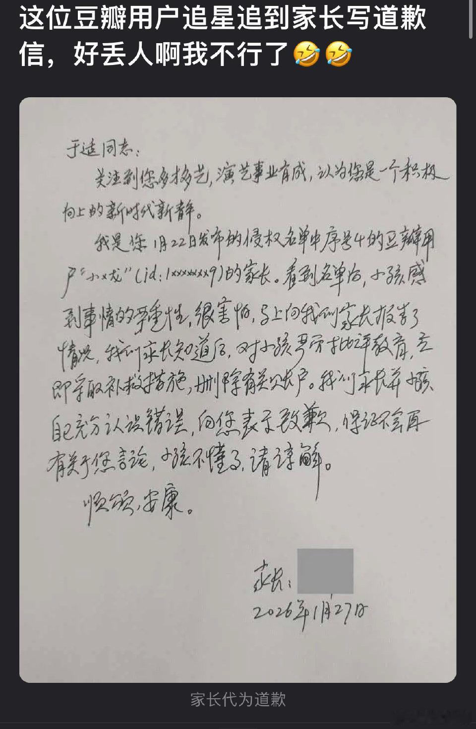 于适告了豆瓣用户,结果家长代孩子道歉了