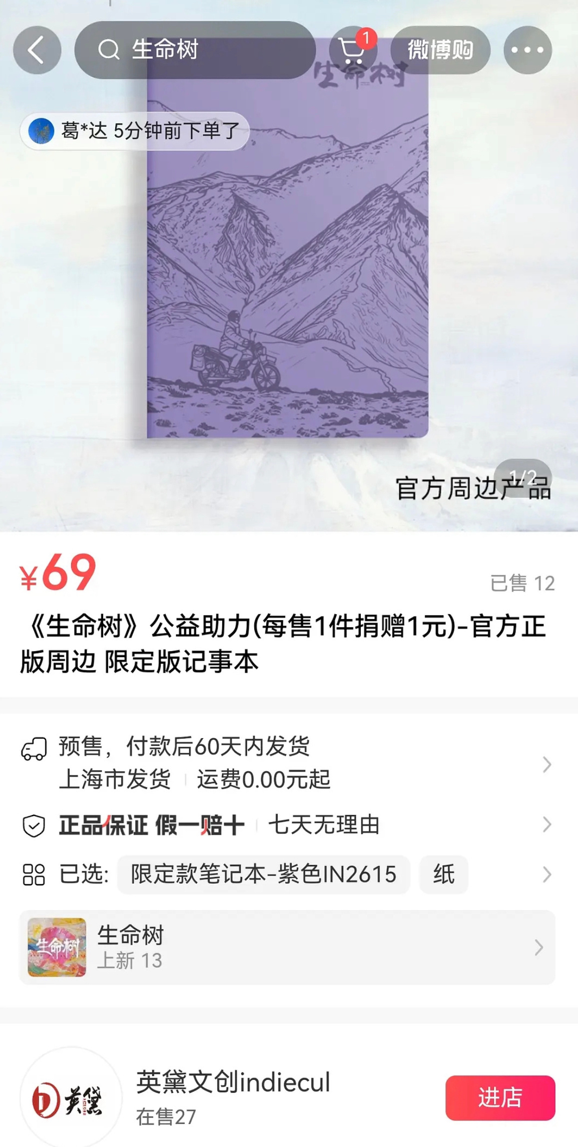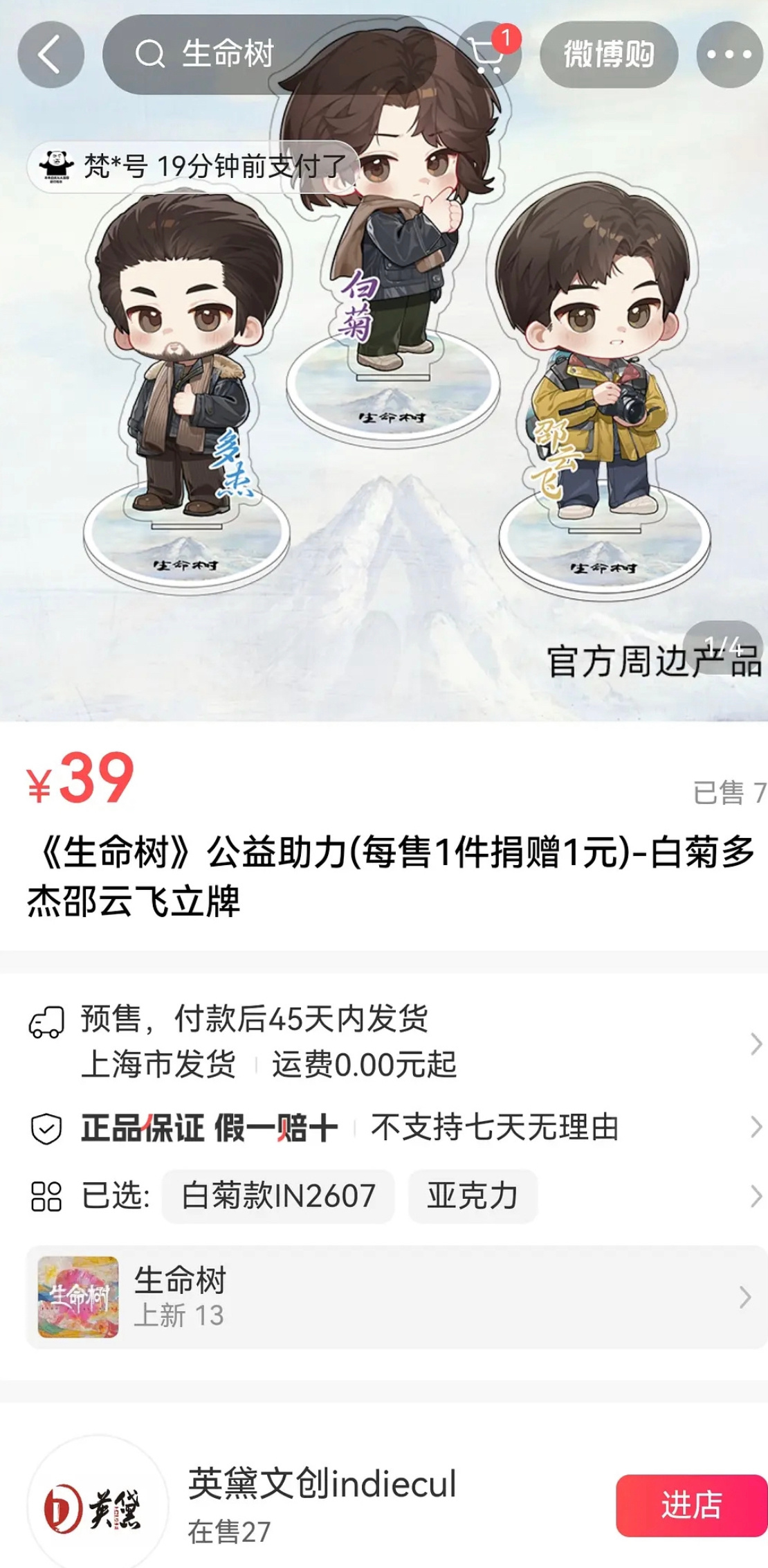 售出一份周边就捐赠一元。