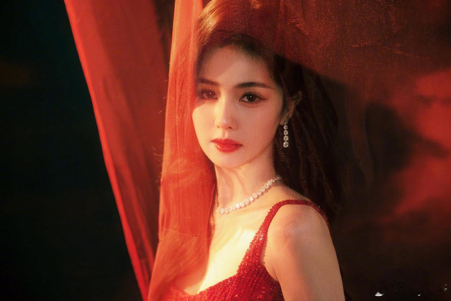 白鹿发新照啦红裙子真的超级适合过年穿啊白鹿