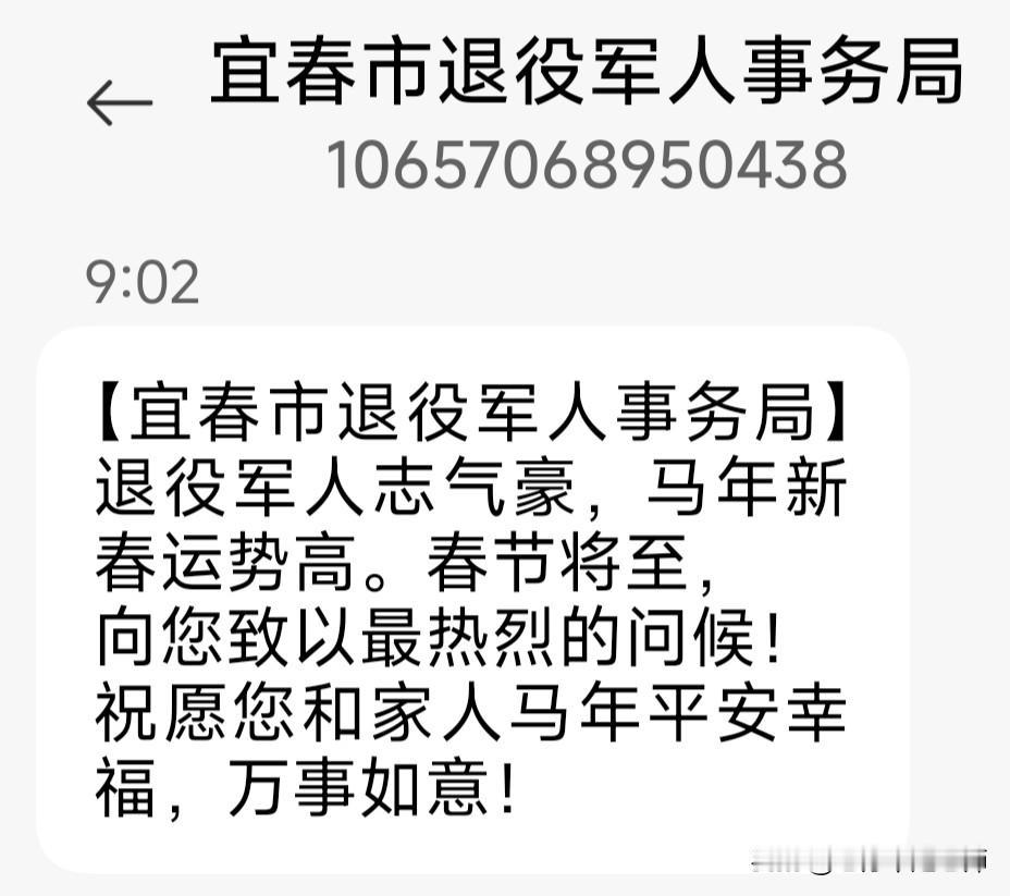 上午10点,中国退役军人事务部发送,给全国退役军人拜年信息,准时送达。加上早些