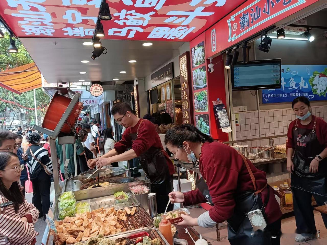 潮汕除夕的烟火气!龙眼南的红 红棚子从街的这头 烧到那头 像把整座潮汕的烟火 都摊在了风里 铁勺在锅里翻出金浪 鱼丸在汤里滚成白星 阿姐的围裙沾着油星 像把日子的细碎 都系在了腰上 塑料凳挨着塑料凳 普通话混着潮汕话 粥香裹着蚝烙的焦脆 从喉咙暖到心口 那只粉色的小兽 蹲在红牌上笑 看我们把乡愁 一口一口 咬成滚烫的方言