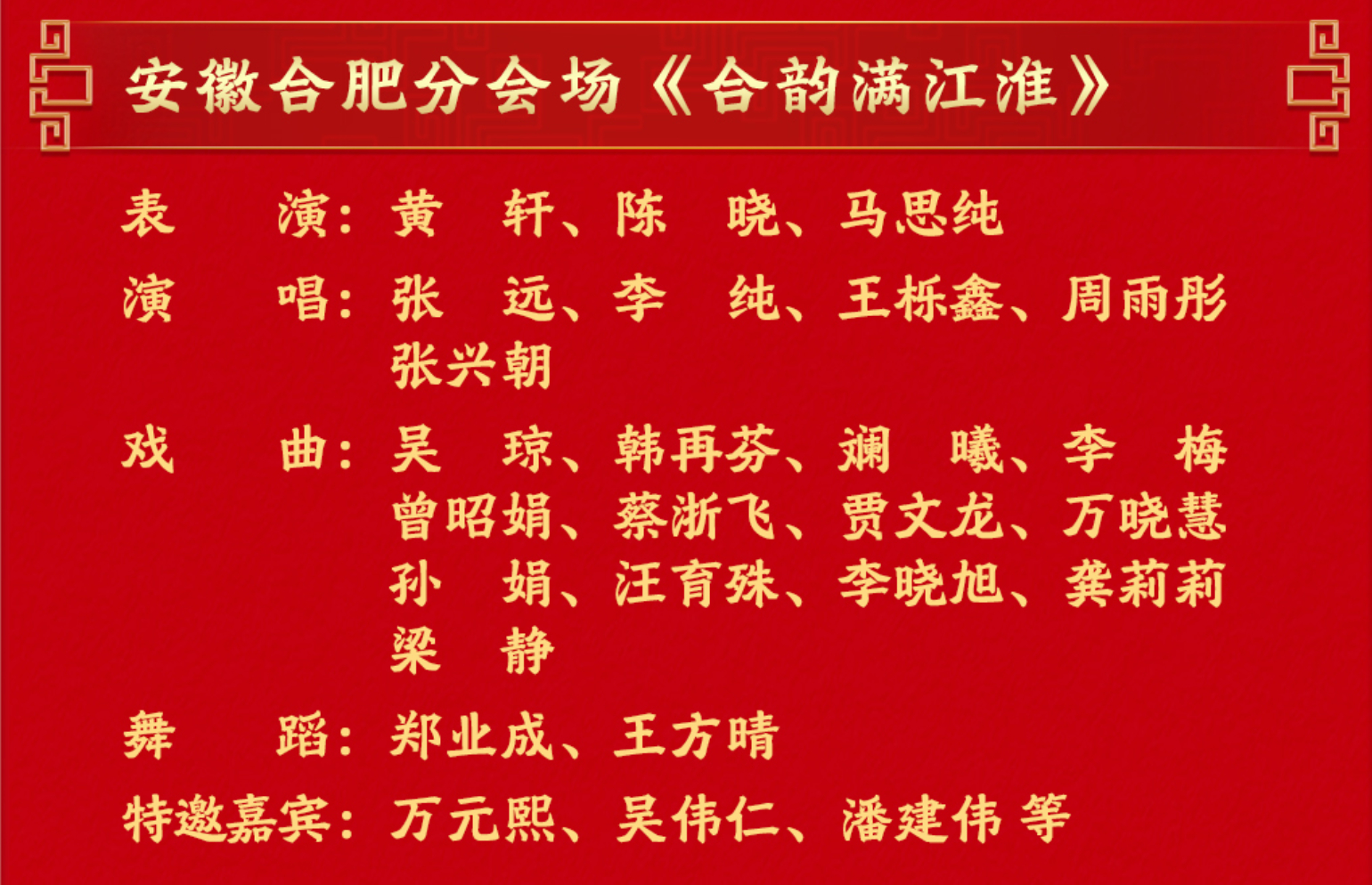 【#春晚合肥分会场阵容曝光#】#春晚合肥会场#阵容公布!黄轩(带来表演。你期待吗
