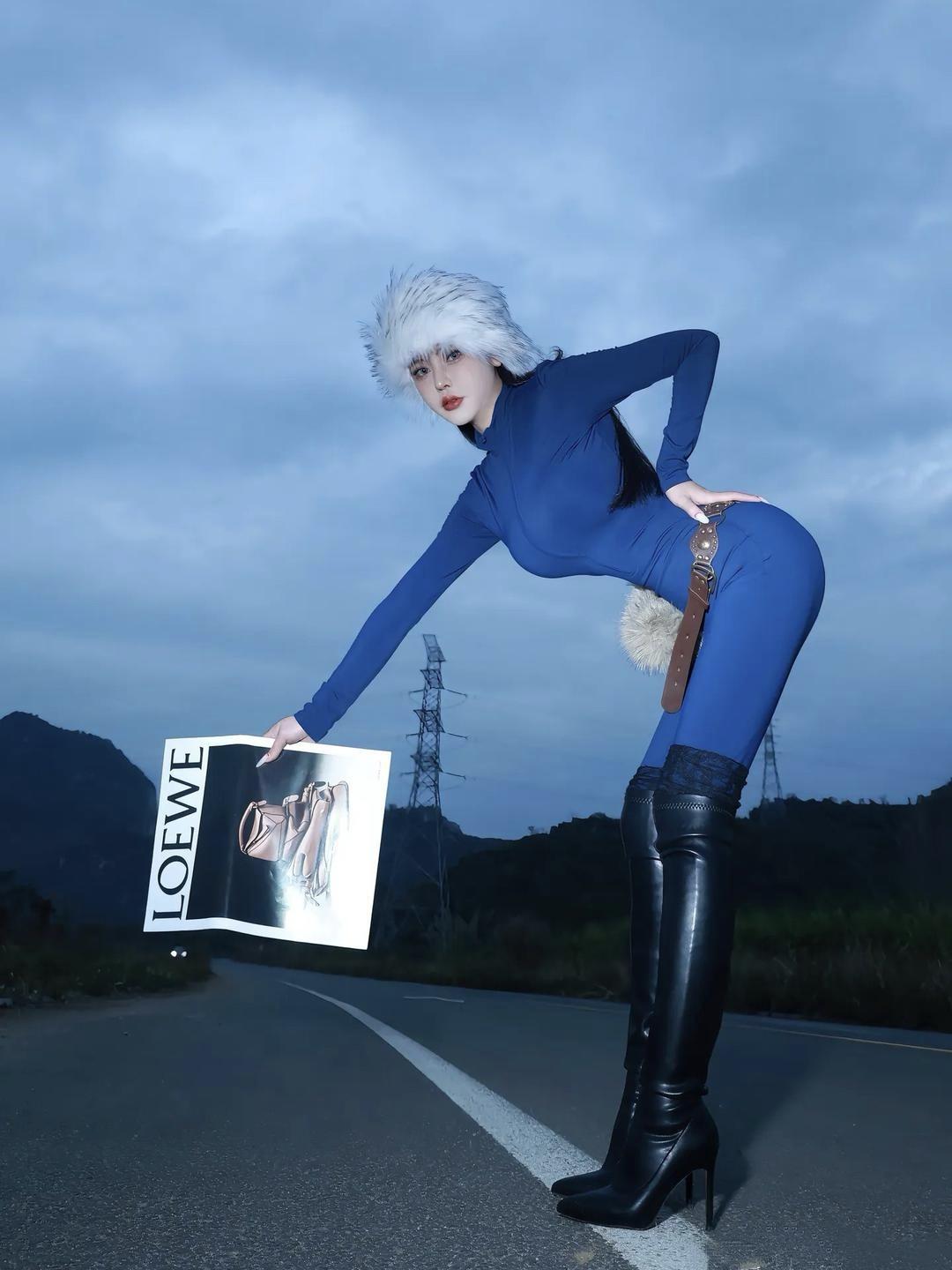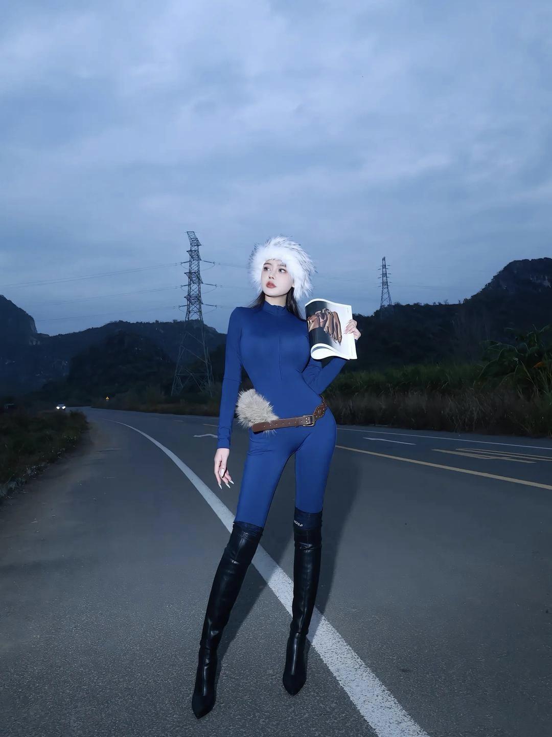 美图欣赏,看图写诗,情感解读 《蓝调公路》 七言绝句: 云垂天末路迢迢, 蓝衫紧裹雪帽飘。 手把书刊凝远目, 山光入袖惹风谣。 现代诗意: 冷调的蓝裹着身体, 白绒帽接住旷野的风。 杂志页角卷着时尚的余温, 公路向远山蜿蜒, 你伸手, 想把整片灰蓝的天, 都拉进镜头里。 清丽短句: 蓝衫,白帽,公路,远山。 当风掀起杂志页面, 你却成了,一幅流动的画。 情感解读: 人间烟火里,总有些瞬间不必言说。一帧风景,一段心事,藏着寻常日子里的温柔与清欢。心有诗意,处处皆是动人光景。 治愈系 图片来源于网络,侵删