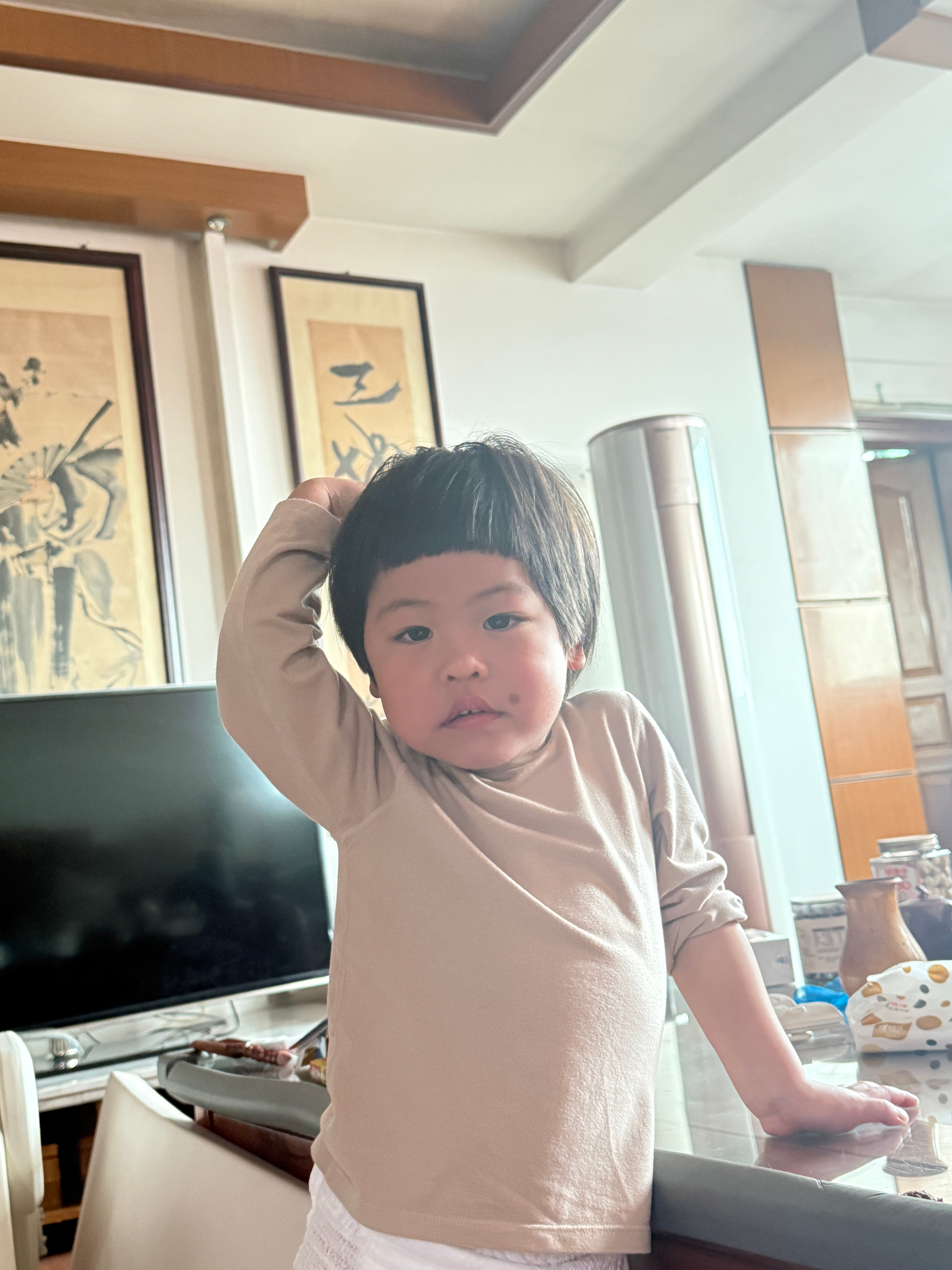 头发太多,新发型又变成带歪的假发了带娃随手拍