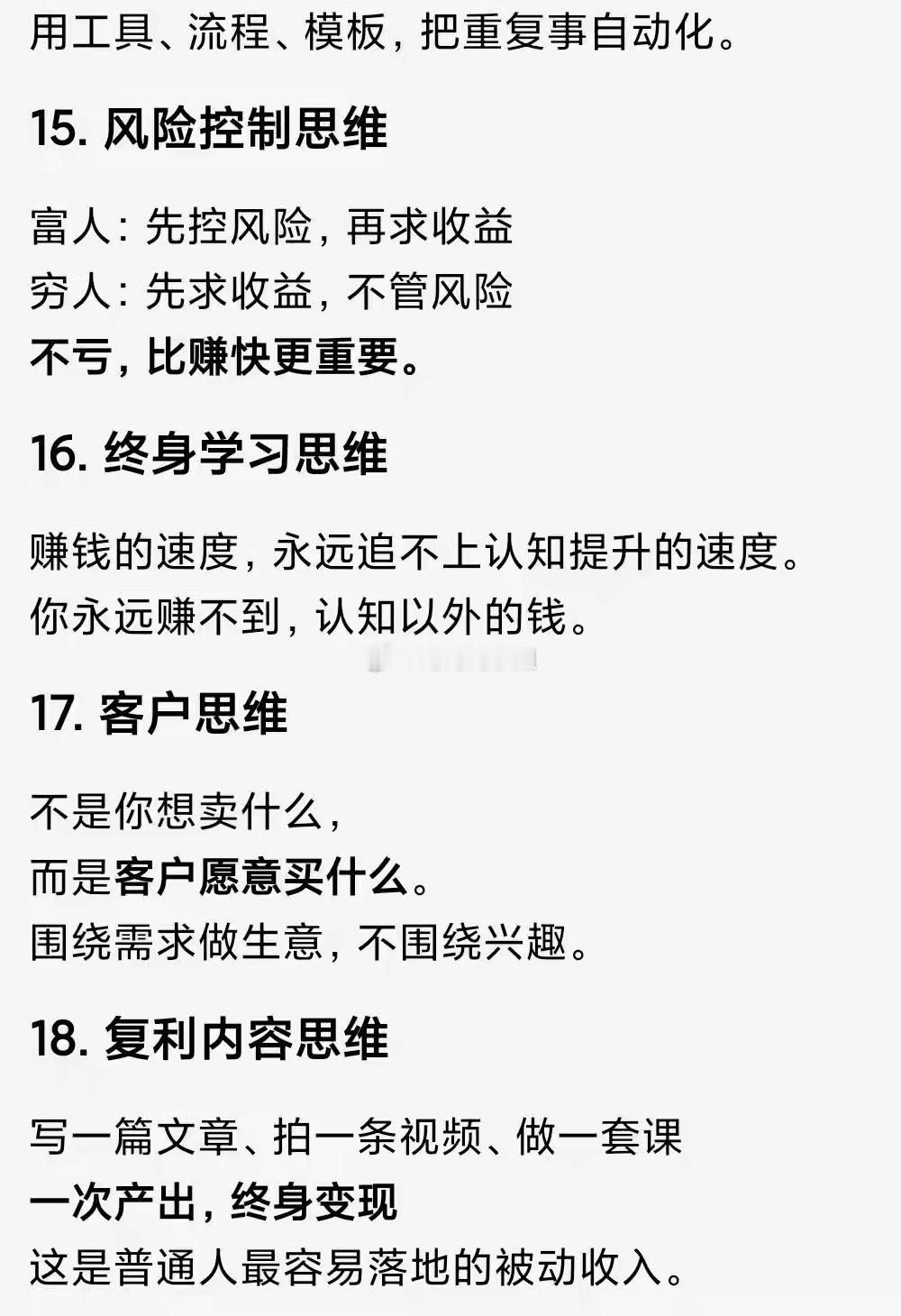 20种赚钱思维,普通人实现财富自由的底层逻辑,值得收藏