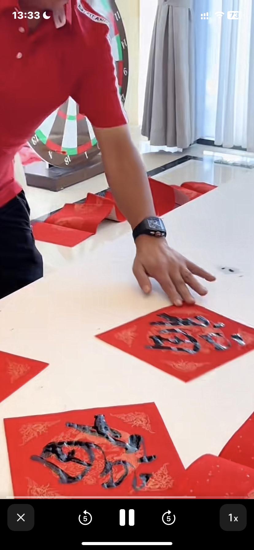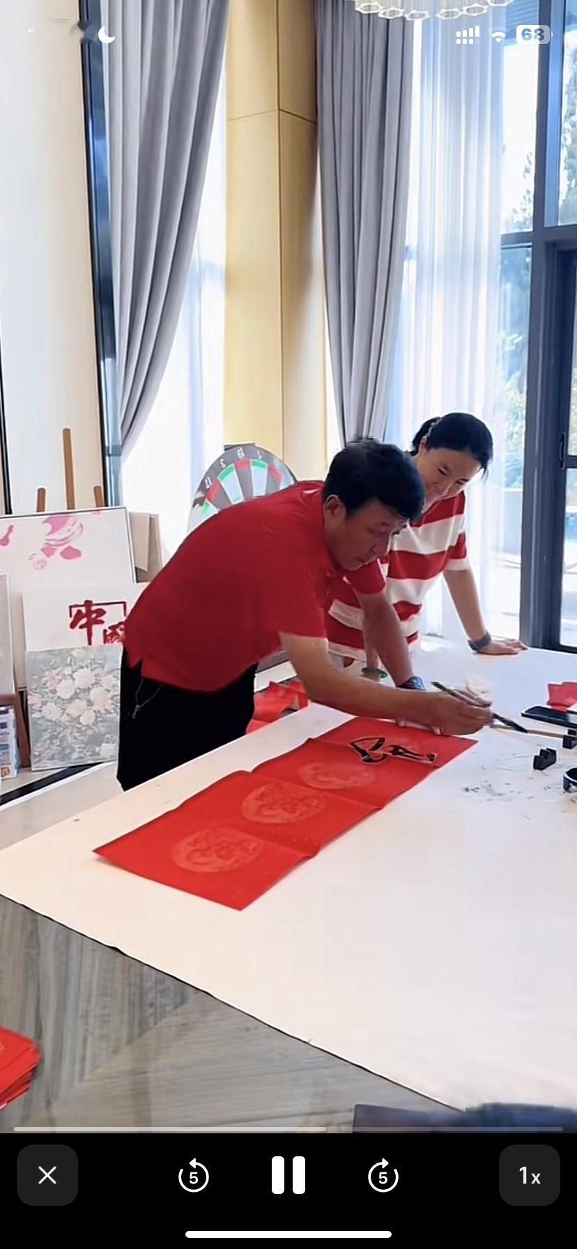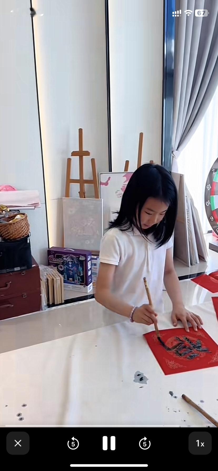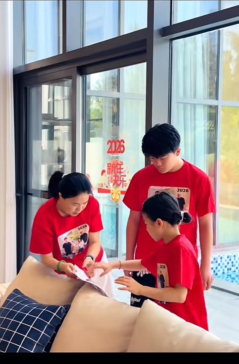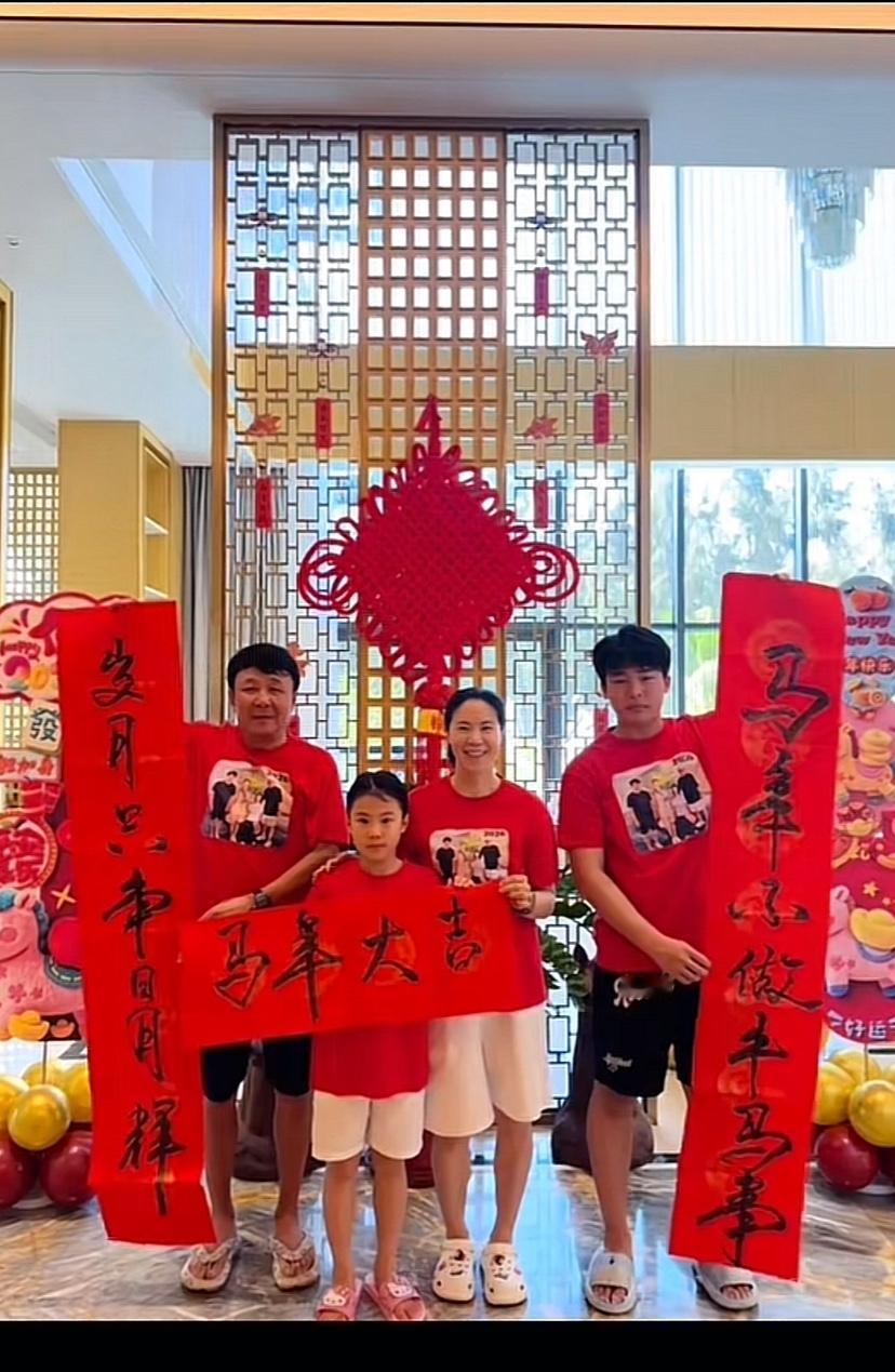 王楠一家四口在海南豪宅过大年,郭总多才多艺,一家人喜气洋洋,妻贤子孝。 看不出来,郭总竟然还有这一手,今天老郭真是露了一手。王楠老公老郭做饭做得好还能写一手好字,真是厉害,老郭能文能武,上得厅堂下得厨房!老郭在自家的大画室,在妻子王楠和一双儿女面前用毛笔写对联和🧧字,真是笔走游龙,老郭的毛笔字真写的不错。老郭深藏不露啊,这书法感觉不输那几个书法院的博导。老郭这待遇很高,世界冠军给拿纸,老郭此刻心里一定是美滋滋的。老郭写完福字,王楠儿子郭麒也挥豪写了福字。女儿笑笑看哥哥写了福字,自己也拿起毛笔在红纸上写了一个大大的福🧧字,兄妹俩因父亲的耳濡目染,毛笔字写的还不赖。 王楠和一双儿女贴窗花和福字。王楠脸上洋溢着幸福的笑容。 王楠一家四口穿着红色的亲子装,手持对联为大家送去新的祝福。儿子郭麒手持上联(马年不做牛马事)老郭手持下联(岁月只争日月辉),王楠和女儿笑笑一起扯着横批(马年大吉)。 王楠将对联和福字贴在自家气派的大门上,这对联特别喜庆接地气。 最喜欢看他们一家人穿一样的衣服拍全家福!多么幸福的一家人啊!他们才是人生赢家!事业有成,又有一双聪明懂事的儿女。老郭和王楠是用智慧经营着自己的人生,真是我们学习的榜样! 除夕灯火暖,骏马载福归。家人围坐,灯火可亲,就是新年最好的样子。祝王楠及家人:龙马精神,身体安康;马到成功,事业辉煌;一马当先,万事顺遂!愿阖家欢乐,福暖四季,除夕快乐,新年大吉!王楠老公 王楠女儿 王楠家教