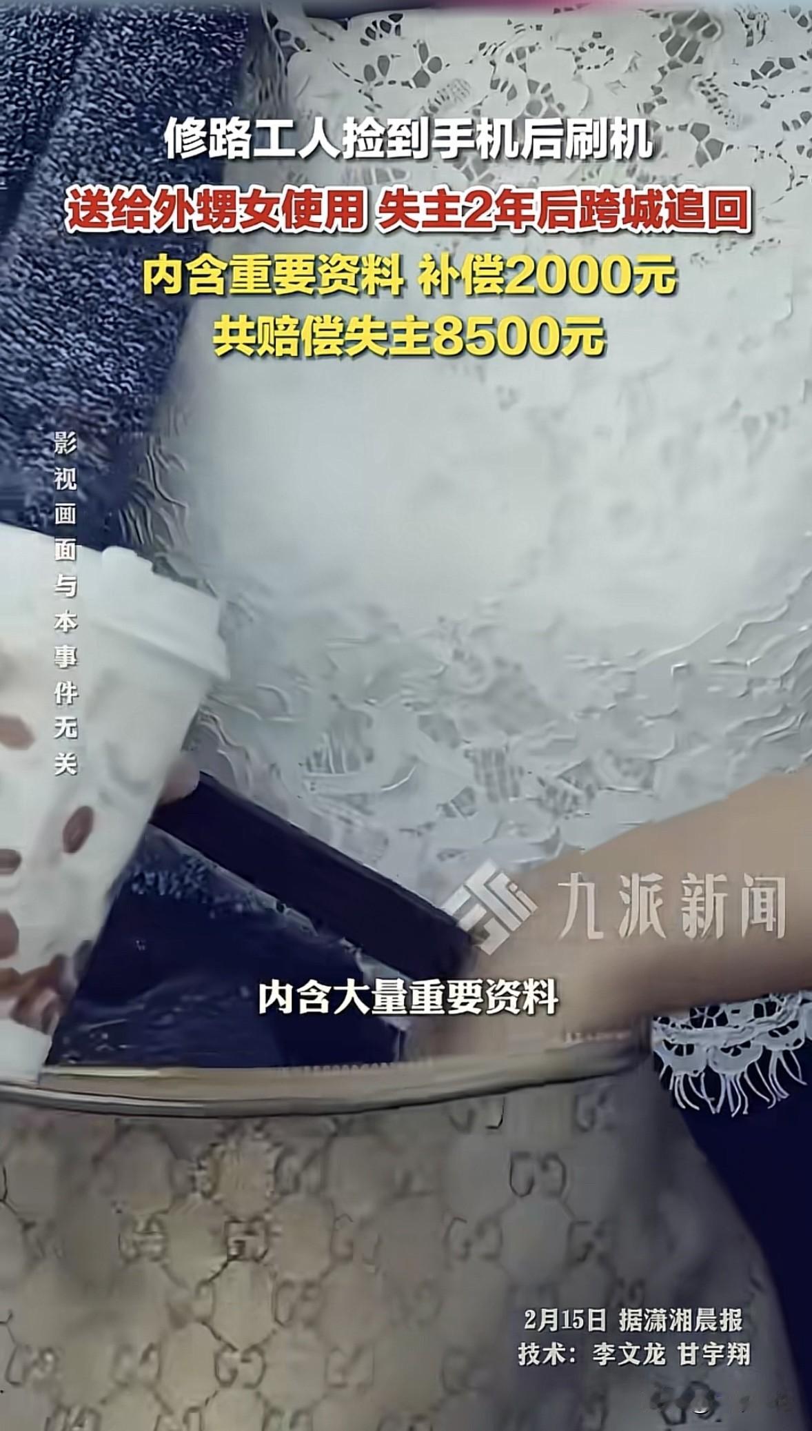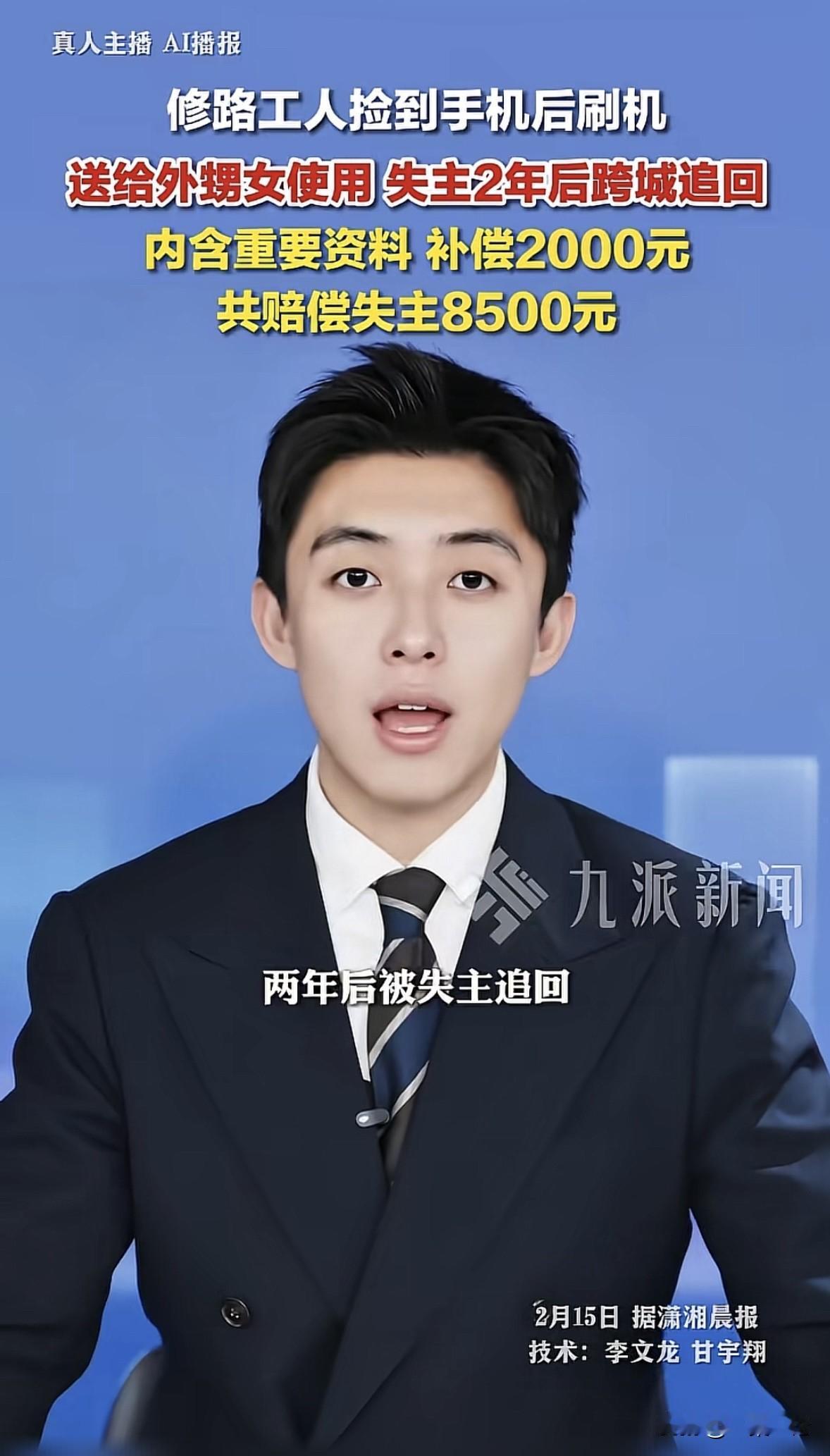 黑龙江大庆,男子2年前走路上捡到一部手机,刷完机大手一挥送外甥女了,哪想到2年后,失主发现丢失已久的手机被激活了,她连忙报警,民警也给力,直接跨省将手机找回,可拿到手机后,失主要求男子赔偿她8500块,赔偿的依据让人意想不到。 2023年10月1号,小刘出门买点东西,因为家附近修路,车过不去,只能步行回家。 谁承想,就这一路走回去,她竟把手机给弄丢了。 那手机里存着她备考的资料、照片和各种重要信息,丢了简直要命。 小刘当时急坏了,沿着原路返回找了好几遍,眼睛都快贴地上了,可那手机就像人间蒸发了一样,连个影都没见着。 没办法,她赶紧跑去派出所报了案。 虽然报了警,但那时候小刘正处在备考的关键期,天天得复习,这事儿只能先搁一边。 但她心里一直没放下,时不时就上手机官网查一下“查找我的手机”功能。 刚丢那会儿,显示手机没被激活,小刘心里还存着一丝念想。万一被好心人捡到,还没来得及用呢? 这一搁,就搁到了2024年8月。小刘再次习惯性地登录官网查询,这一查,屏幕上显示的信息让她心跳加速。 那部丢失快一年的手机,竟然被激活了,而且还有插卡使用的记录! 这下小刘坐不住了。她立马联系了手机厂商,按正规流程提交了申请,希望能查到手机的具体去向。 厂商那边效率挺高,很快给了回函,明确告知:这部手机确实在丢失后被人动了手脚,先是在绥化市被刷了机,清除了所有数据,现在的使用地点是沈阳市,并且还提供了相关的使用线索。 拿着这份线索,小刘又一次冲进了肇州县永乐派出所。 接警的警察听完小刘的叙述,看着厂商提供的详细数据,立马意识到这事儿有戏。 警察迅速展开核实工作,一条条比对信息,最终拍板确认:现在沈阳出现的那部手机,就是小刘两年前丢的那一部! 为了帮小刘把手机找回来,今年2月,警察直接奔赴沈阳。到了地方,根据线索摸排,终于找到了现在的使用者。 这一见面,真相大白。原来,当年小刘丢手机后,被在附近修路的工人大李(化名)给捡到了。 大李也没想那么多,觉得捡个手机是运气,后来找人把手机刷了机,原来的照片、资料全给删了,干干净净。 再后来,他把这部手机当成礼物,送给了在沈阳的外甥女。 这外甥女也不知道手机来路不正,拿到手就插卡用了,直到警察找上门才知道这是别人的遗失物。 按理说,这手机被刷机、被转送,想要回来难度不小。 但警察没放弃,他把大李、外甥女一家和小刘拉到一起,既讲法律又讲情理,耐心地做工作。 最后,在警察的协调下,双方都退了一步。 大李和外甥女家人也明白这事儿自己理亏,虽然手机用了这么久,但毕竟不是自己的。他们同意给小刘一笔补偿,总共8500块钱。 具体算下来,手机本身值6000块,里面被删掉的资料和数据折价2000块,再加上小刘这两年找手机、跑腿产生的费用500块。 小刘拿到这笔钱,心里的石头总算落了地。虽然手机里的资料找不回来了,但能有个说法,还拿回了经济补偿,这结果也算是不幸中的万幸。 《民法典》第314条规定:拾得遗失物,应当返还权利人。拾得人应当及时通知权利人领取,或者送交公安等有关部门。 第316条规定:拾得人在遗失物送交有关部门前,有关部门在遗失物被领取前,应当妥善保管遗失物。因故意或者重大过失致使遗失物毁损、灭失的,应当承担民事责任。 大李捡到手机后,不仅未寻找失主或上交,反而找人“刷机”清除数据并转赠他人,这属于典型的“因故意致使遗失物毁损、灭失”及非法侵占行为。 虽然手机最终被善意第三人,也就是外甥女使用,但法律规定权利人有权向无处分权人,也就是大李请求赔偿。 大李的刷机行为直接导致小刘手机内资料永久丢失,转赠行为导致手机难以原物追回,构成了“重大过失”和“故意”。 因此,警方协调大李及其家属赔偿手机价值、资料损失及寻找费用,完全符合民法典关于拾得人侵权责任的规定。 所以说,捡到东西不还且擅自处置,如刷机、转卖,不仅面临道德谴责,更需承担法律赔偿责任。 对于这件事,你怎么看? 欢迎关注@一案一论
