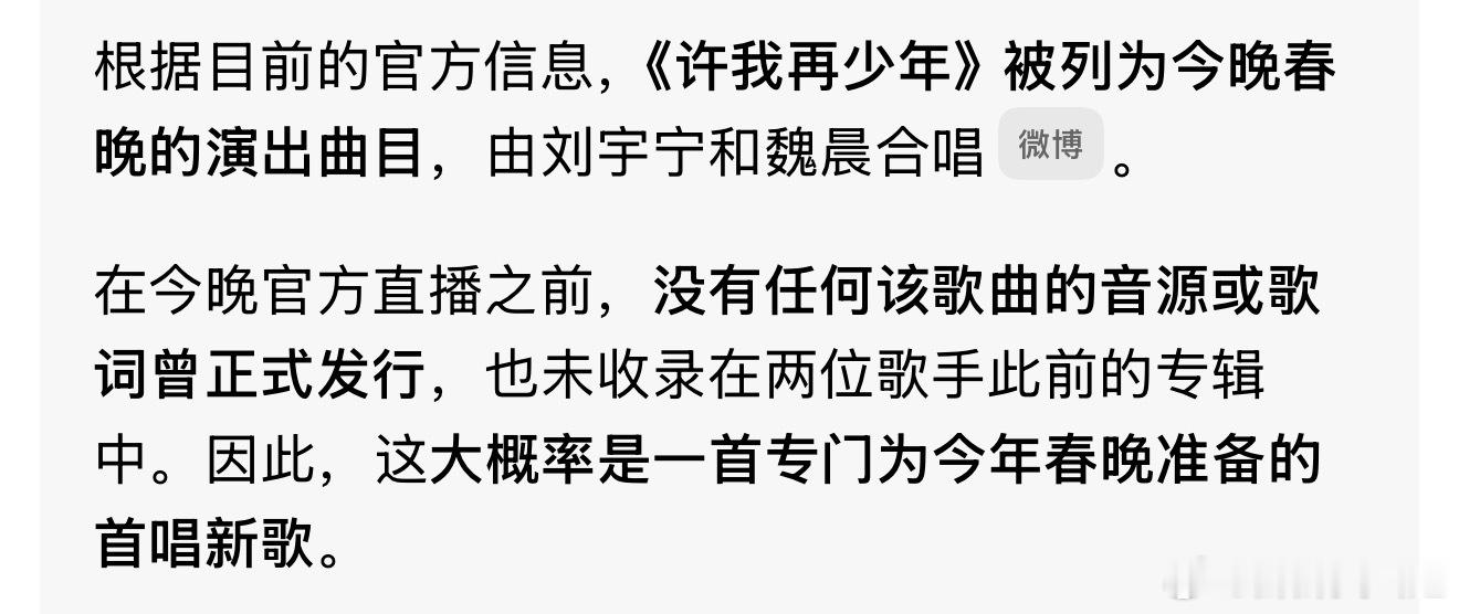 春晚节目单 马年春晚节目单公布嚯!刘宇宁今晚央视春晚舞台和魏晨一起唱新歌!!!狠狠期待这首红彤彤的《许我再少年》🍓!!! 魏晨刘宇宁许我再少年