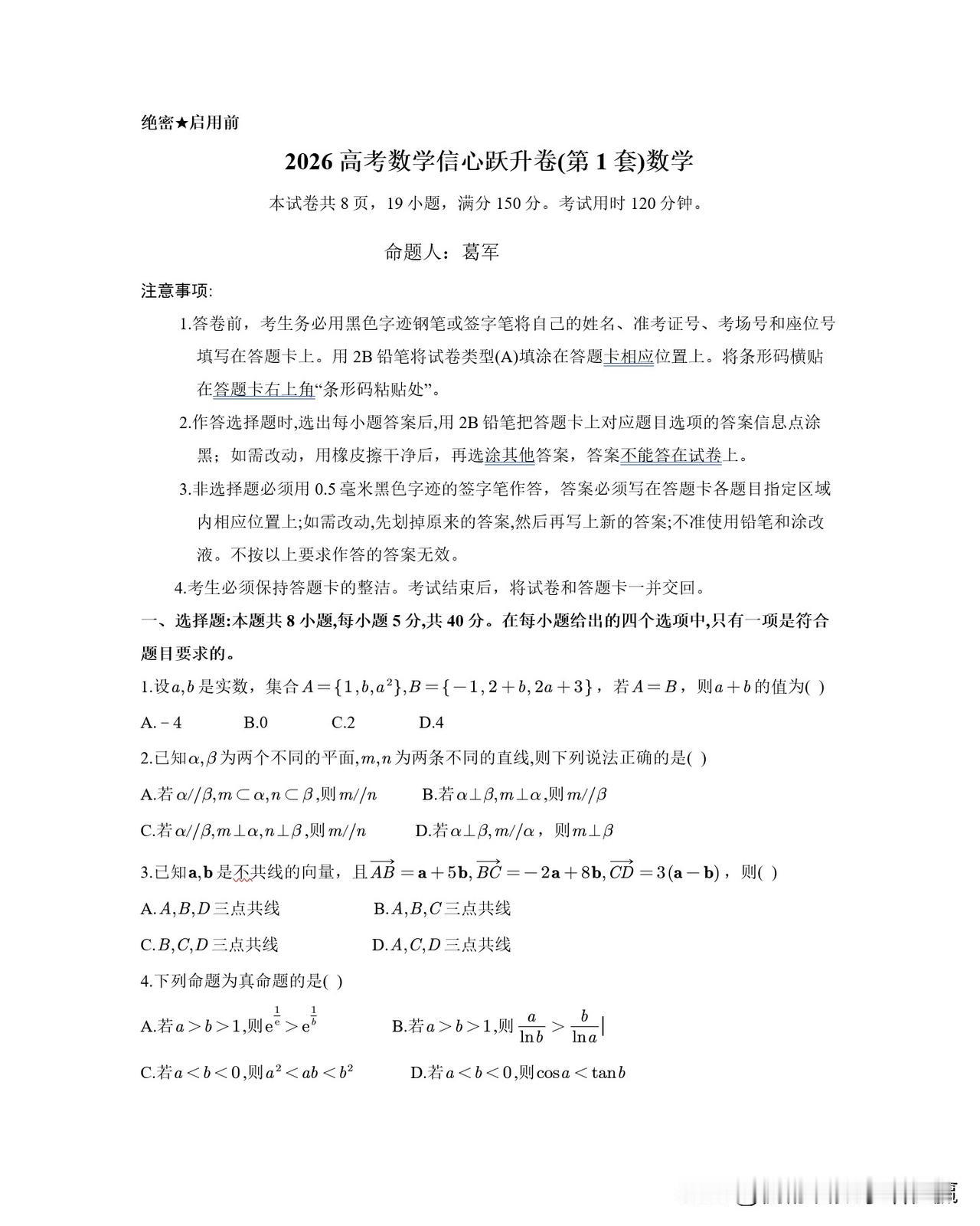 葛军老师命制的高考信心跃升卷,2026年每位考生必做,葛教授亲自讲解。衡舒君用思维导图进行体系搭建,知识卡片的梳理! 1即2(逆向/同理思考) 1即4(运算/命题变换) 1即a(一般化,规律化......)