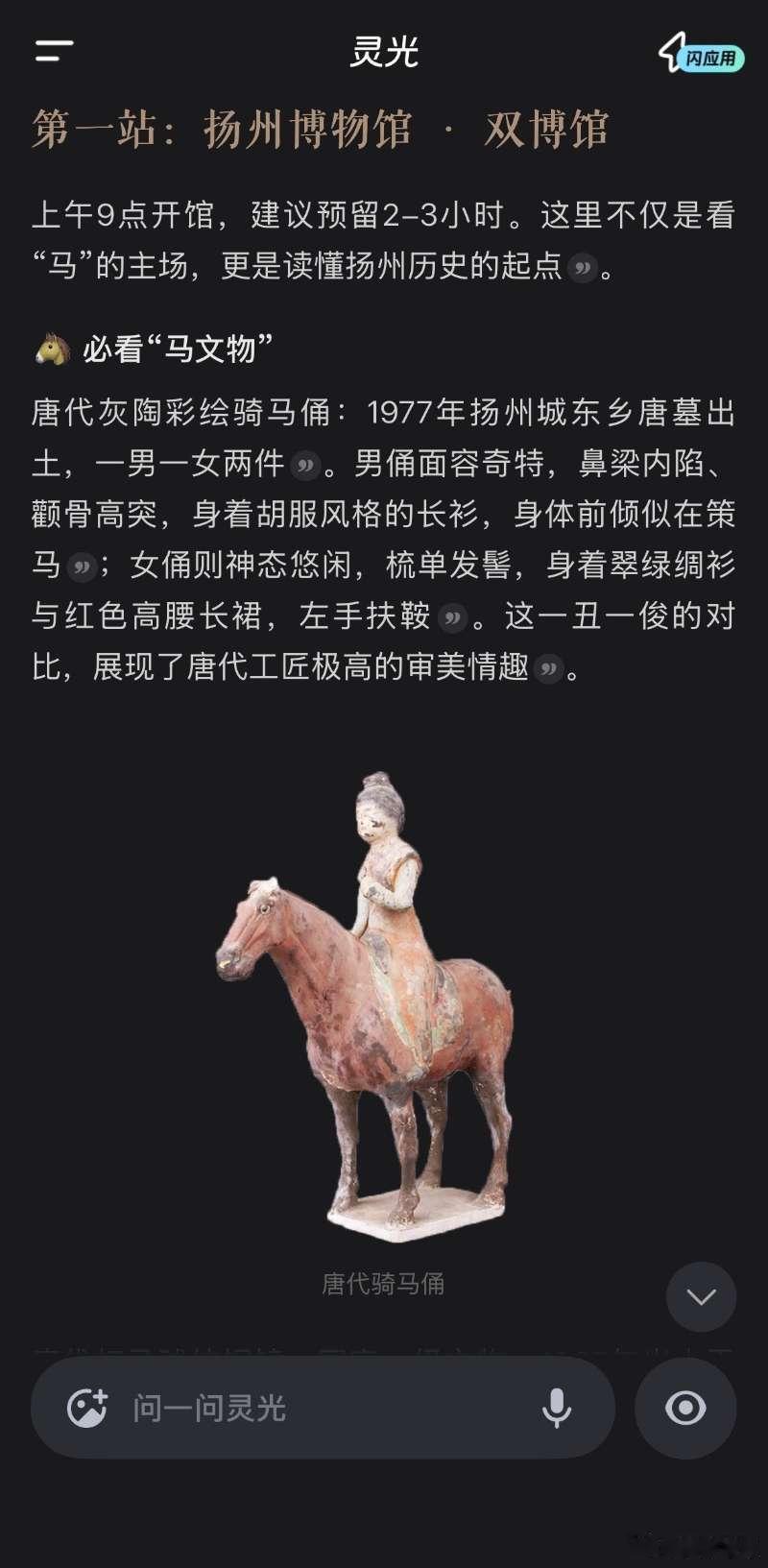 我的马年抓马之旅我们扬州博物馆有唐代的彩绘陶马,虽然比不上唐三彩名气大,但那种圆润饱满的造型特别有扬州风格。马年到了,大家可以多来看看咱家乡的文物,感受一下千年扬州的“马味儿”。灵光带你去抓马