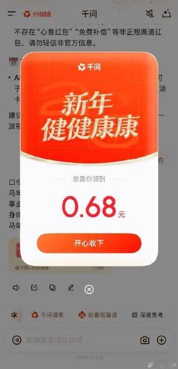 小孩哥教爷爷抢千问红包哈哈哈,不愧是小孩哥啊!居然把一线城市的AI新玩法带回老家,手把手教长辈们用千问AI抢红包、置办年货,一家人团团圆圆其乐融融真好啊。以前AI是高冷的前沿技术,如今像千问这样的AI早已变成了贴近生活的温情纽带,它用简单好用的AI体验,填平了数字鸿沟,让科技有了温度,让年味更有新意,给千问点赞!👍