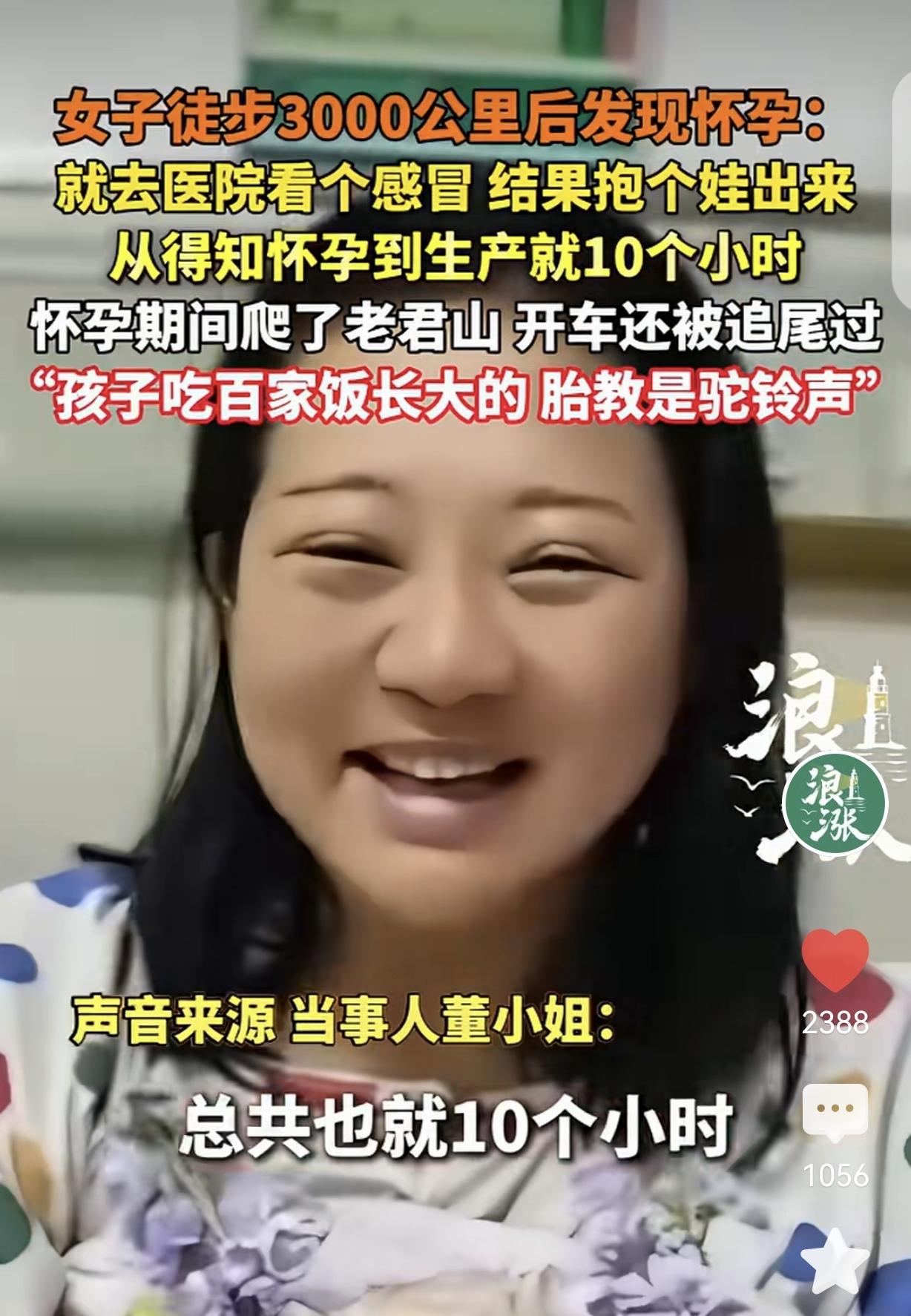 “离大谱了!”河南洛阳,一女子徒步3000公里后感冒,去医院看医生,竟被发现她不但怀孕了,而且羊水都破了,宫口都开了6指,马上就要生了,而她竟毫无察觉,从她知道自己怀孕到生,就10个小时,她怀孕时还去爬了老君山,开车还被追尾过。网友:9个月不来大姨妈不知道吗?孩子是谁的? 最近网上都在热议董女士的事儿,她这一经历,简直比电视剧还精彩,让人惊掉下巴。 董女士参加了新疆的徒步活动,这一走就是139天,整整3000公里啊! 从新疆哈密一路徒步到了河南洛阳。这一路上,她那可是相当厉害,不仅坚持走完了这么长的路程,还去爬了老君山。 想象一下,在陡峭的山路上,她一步一步往上攀登,那毅力真不是一般人能有的。 而且,她还自己开车,结果途中还遭遇了追尾事故,安全气囊都弹出来了,好在人没啥大事。 可谁能想到,这么折腾的她,居然怀孕了,而且自己还完全不知道! 董女士本来就患有多囊卵巢综合征,月经一直就不规律,再加上孕期也没有像其他孕妇那样,有孕吐反应,她就单纯以为自己胖了,根本没往怀孕那方面想。 直到有一天,她感冒了,觉得身体不舒服,就去医院看医生。 这一去可不得了,医生一检查,发现她羊水都破了,宫口都开了6指,马上就要生了! 从她知道自己怀孕到孩子出生,就短短10个小时。这消息一出来,大家都惊呆了,她自己也懵了。 本来是去看感冒的,结果直接抱了个娃出来,这剧情反转得太快了。 孩子出生后,因为早产了一个月,还在保温箱里待着,不过好在各项检查结果都正常。 这事儿在网上传开后,网友们都炸锅了,有人就纳闷了:“9个月不来大姨妈不知道吗?孩子是谁的?” 其实啊,董女士因为自身疾病月经不规律,没察觉到怀孕也挺正常的。而且每个人的身体反应都不一样,不是所有孕妇都会有明显的孕吐等症状。 不过话说回来,董女士孕期这么高强度地徒步,还不做产前筛查,这风险可真不小。 产科医生都说了,孕期高强度徒步且未做产筛,存在一定风险。还好她和孩子都平平安安的,这也算是不幸中的万幸了。 董女士这经历,真是唏嘘,大家一定要多关注自己身体的异常信号,定期做检查,可别像董女士这样,这么离奇的事儿还是少发生为好。 有人分享,店里一个女孩,有点胖,有天上班说肚子疼,请假说去医院看看,结果下午就生了。从怀到生自己和她老公毫不知情,两人懵逼的状态下就当父母了。爷爷奶奶姥姥姥爷紧急赶到,爷爷奶奶骂孩子爸,姥姥姥爷骂孩子妈。 我闺蜜也是这样子,怀孕八个月才知道怀孕。也是多囊卵巢综合征,月经不规律经常几个月不来月经!我们还一起去潜水呀游泳娃做泰式按摩那些。抽烟喝酒熬夜。关键她也没感觉到胎动,以为吃坏了肚子便秘有时拉肚子。结果有天她告诉我她要生了,我都当场石化了!如今孩子2岁了。 董女士这事儿,还有那些类似经历的人,真是让人又惊又感慨。 多囊卵巢综合征导致月经不规律,这确实让不少女性对怀孕的感知变得迟钝,就像董女士,一路折腾都没察觉自己有孕。 可话说回来,即便身体有特殊情况,也不能完全忽视身体发出的信号啊。 孕吐不明显,但身体的其他变化,比如体重异常增加、腹部隆起等,多少还是该引起重视。 而且孕期不做产前筛查,这风险实在太大。高强度徒步、遭遇追尾,这些行为和意外,对胎儿的潜在危害难以估量,好在最后母子平安,真是不幸中的万幸。 从这些事也能看出,女性对自己的身体状况得有更清晰的认知和关注。 不能因为月经不规律就掉以轻心,定期检查必不可少。避免类似“稀里糊涂当妈”的离奇事儿发生。 毕竟,孩子的健康和母亲的平安才是最重要的,可不能总靠运气来保障。 对此,你怎么看?