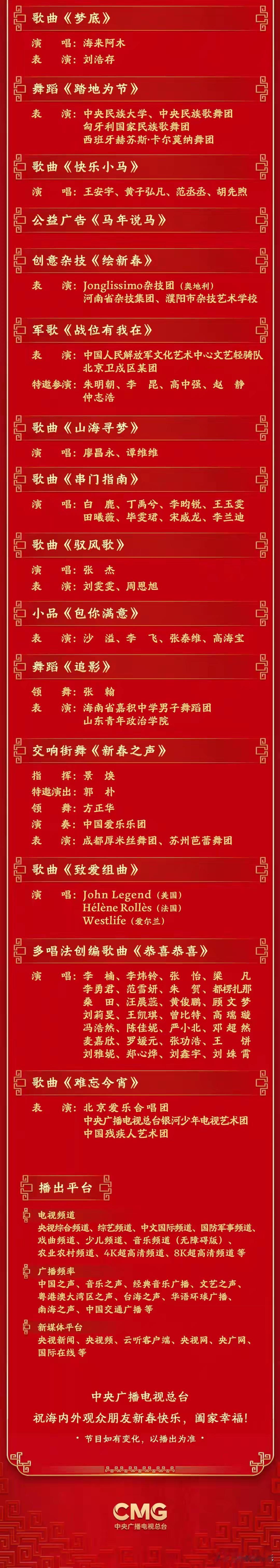 央视春晚节目单刚刚发布! 就在今晚8点,2026央视春晚重磅来袭!开场《马上有奇迹》点燃新春,结尾《难忘今宵》唱响回忆。马年春晚,看“马上有奇迹”,迎新年好运!节目单已出,你最期待谁? 今晚8点,锁定央视,一起看春晚过大年🧨