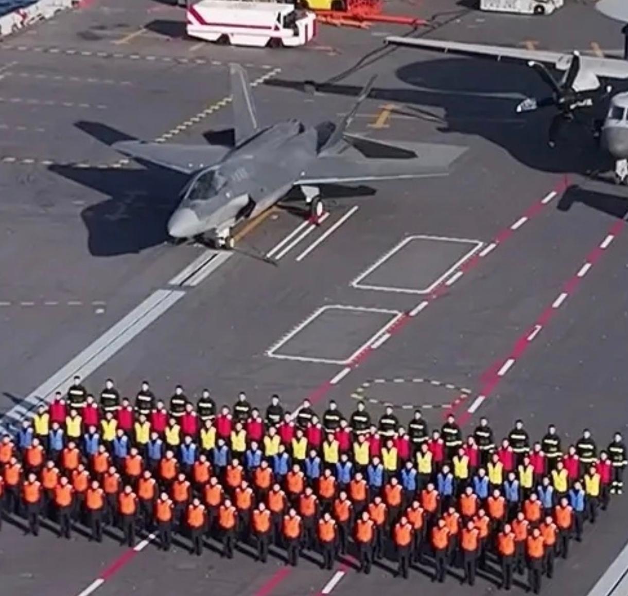 咱们福建舰+歼-35的王炸组合,今天舰上出现双涂色歼-35,低调霸气直接拉满! 先快速划重点说清歼-35基本情况: 我国自主研制的首款隐身舰载战斗机,中型双发、单座、隐身多用途,适配电磁弹射航母,主打制空、制海、对面打击,是海军远海防卫核心装备。 ✅ 隐身:全向隐身设计+海洋环境专用涂层,前向RCS极低,隐身能力对标世界一流 ✅ 动力:双发配置,可靠性、机动性、超音速性能更适合舰载空战 ✅ 适配:机翼可折叠、机身抗盐雾防腐,完美匹配福建舰电磁弹射与拦阻 ✅ 定位:和歼-15T、空警-600组成福建舰舰载机三剑客,构建完整海空作战体系 今天福建舰拜年画面直接炸场:甲板列阵3架歼-35+3架歼-15T+3架空警-600,其中一架歼-35换上上深下浅双拼低可视涂装,和常规浅灰涂装同框,颜值与实战属性双在线,折叠翼细节也清晰可见,妥妥的量产服役前最后校准! 从FC-31到歼-35舰载型,从陆基试飞到福建舰电磁弹射起飞,再到今天双涂色亮相,咱们终于有了能和顶尖舰载隐身机正面抗衡的国之重器。 大平板+隐身舰载机,不是谁的复刻,是中国海军自己的标准答案!
