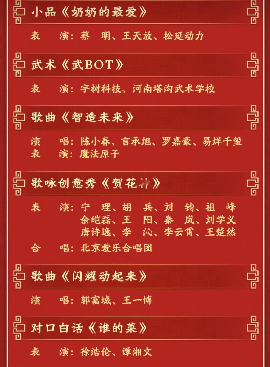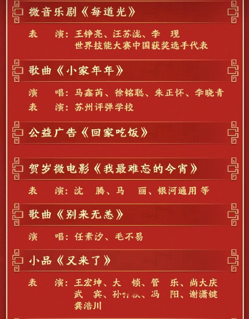央视发布春晚节目单,可是我发现一个问题,相声是不是彻底告别春晚舞台了? 这么多的语言类节目,传统的相声却一个也没有! 微电影,音乐剧,小品,甚至还有对口白话都在列,蔡明也回归了,相声演员们是不是都转行了[笑哭], 今年岳云鹏没有来,相声就更没有人能登台了! 对口白话,是不是也是创新的相声,在传统的相声基础上加入新元素! 特别怀念好多年前的相声节目,《虎口遐想》《五官争功》《关公战秦琼》,相声的辉煌真的一去不复返了!现在的90后00后,都去看喜人奇妙夜了[笑哭]!春晚时间安排