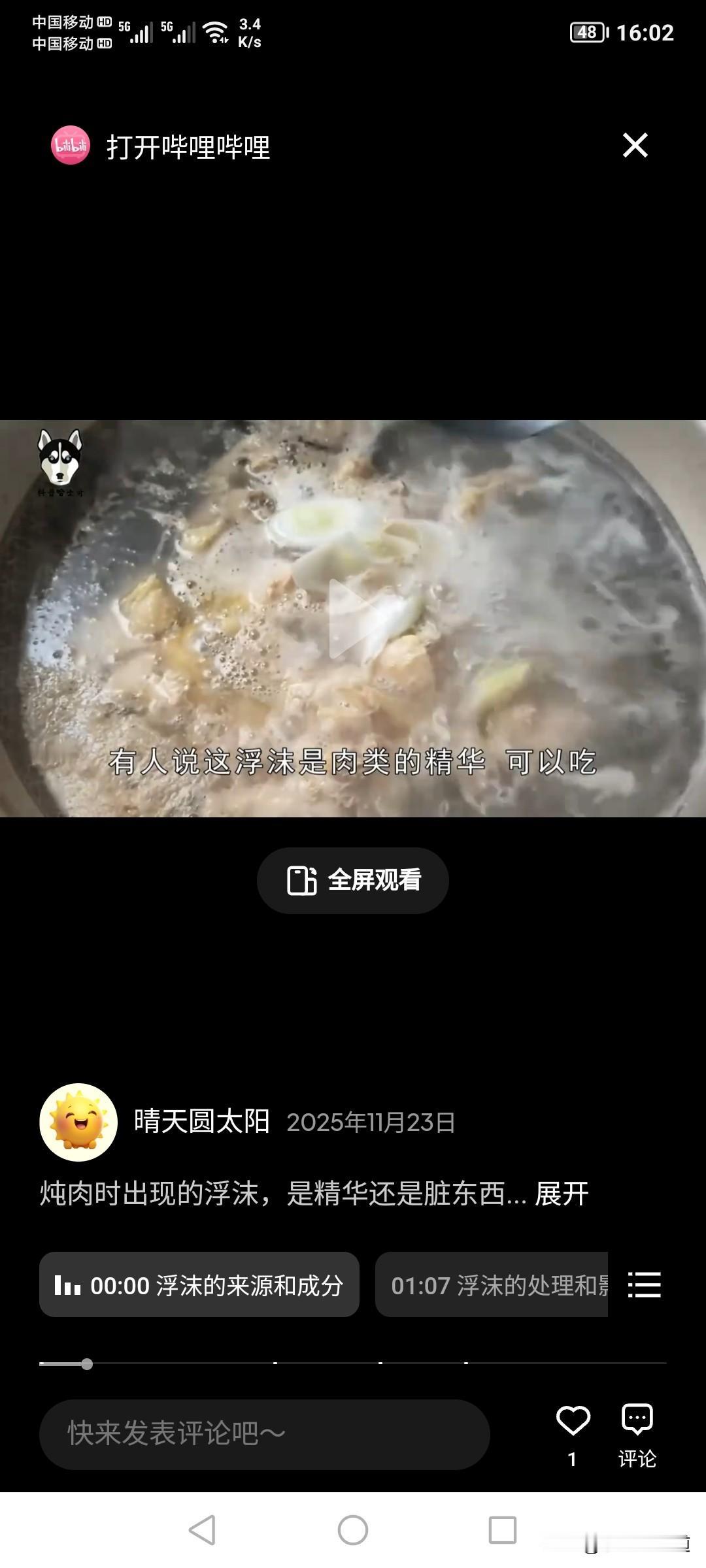 炖肉时出现的浮沫确实不是传统认为的"营养精华",而是肉类在加热过程中血水、蛋白质和脂肪等成分受热变化后形成的混合物,需要根据浮沫的类型和阶段决定是否撇去,而非一概而论。 一、浮沫的形成与本质 1. 形成原因 炖肉时出现的浮沫主要由肉内毛细血管残留的血液、渣滓和蛋白质高温变形形成。不同部位的肉产生的浮沫量不同,这是因为毛细血管数量差异导致的——背部肉毛细血管较少,浮沫少;腿部、肩部等纹路复杂部位毛细血管丰富,浮沫多。 2. 浮沫的本质 浮沫是表面活性剂作用的结果。肉类中的蛋白质、皂苷等物质能降低液体表面张力,当加热搅动时空气进入液体,便形成了泡沫。它并非单一物质,而是多种成分的混合物,随炖煮时间推移而变化。 二、浮沫的三个阶段及处理方式 1. 第一阶段:红褐色浮沫(需撇去) - 特征:煮沸初期出现,颜色深褐,腥味重,絮状物明显 - 成分:主要是血红蛋白、肌红蛋白,即肉中残留的血水和杂质 - 处理:必须及时撇去,否则会影响汤的外观和口感,使汤色浑浊且有腥味 - 小技巧:提前3-4小时用冷水浸泡肉,每小时换水,能有效减少血水;冷水下肉,避免表面蛋白质瞬间凝固锁住血水 2. 第二阶段:白色浮沫(可保留) - 特征:红褐色浮沫撇去后继续炖煮出现,细小绵密,无腥味 - 成分:主要是蛋白质和少量脂肪,是肉中大分子物质析出形成 - 处理:可以保留,这是肉的"精华"部分,撇去会影响汤的鲜味和营养 - 注意:若追求清澈高汤,可撇去;但若想获得奶白浓汤,则应保留。随着炖煮时间延长,这些浮沫会逐渐溶解,转化为鲜味来源 3. 第三阶段:黄白色"浮沫"(视需求处理) - 特征:白色浮沫撇净后出现,大片"小泡沫",均匀透亮有香气 - 成分:肉中溶出的脂肪油滴,是汤的风味来源之一 - 处理:可根据减脂需求决定——若需控制脂肪摄入可适当撇去;若追求风味则可保留 - 小技巧:选择瘦肉、去除高脂部位(如鸡皮)、煮好后冷藏去凝固脂肪 三、其他常见食物泡沫的处理 1. 应保留的泡沫 - 茶沫:含"茶皂素",可能具有抗菌作用并能抑制脂肪吸收 - 果汁泡沫:含活性酶,有助于抗炎抗菌、美容养颜,应尽快饮用 - 粥/面泡沫:由淀粉和蛋白质形成,对健康无害,可放心食用 2. 应处理的泡沫 - 豆浆泡沫:含皂苷,易造成"假沸",需继续煮至泡沫消失确保熟透 - 火锅泡沫:含脂肪、残留血水和杂质,建议撇去 - 碳酸饮料气泡:过多二氧化碳会刺激胃黏膜,影响消化功能 四、实用建议 1. 炖肉前准备:冷水浸泡+焯水是关键,能有效去除血水和杂质 2. 炖煮技巧:大火烧开后转小火慢炖,避免水分快速流失导致肉质变硬 3. 撇沫工具:使用细眼漏勺或专门撇浮沫的网勺,能更精准地去除不需要的浮沫 4. 特殊人群注意:高血脂人群应适当减少脂肪摄入;儿童消化系统不完善,建议食用撇去较多浮沫的汤 总结:炖肉时的浮沫并非简单的"精华"或"脏东西",而是分阶段、分成分的复杂混合物。正确做法是:撇去初期红褐色浮沫,保留后期白色精华浮沫,根据需求处理脂肪浮沫。这样既能保证汤的鲜美口感,又能兼顾健康需求,让传统烹饪技艺更科学合理。