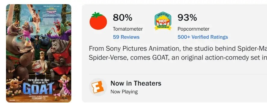 库里参与制作的动画片 “ GOAT ” 开化口碑很好果然拿过奥斯卡动画奖的团队就是厉害 👍