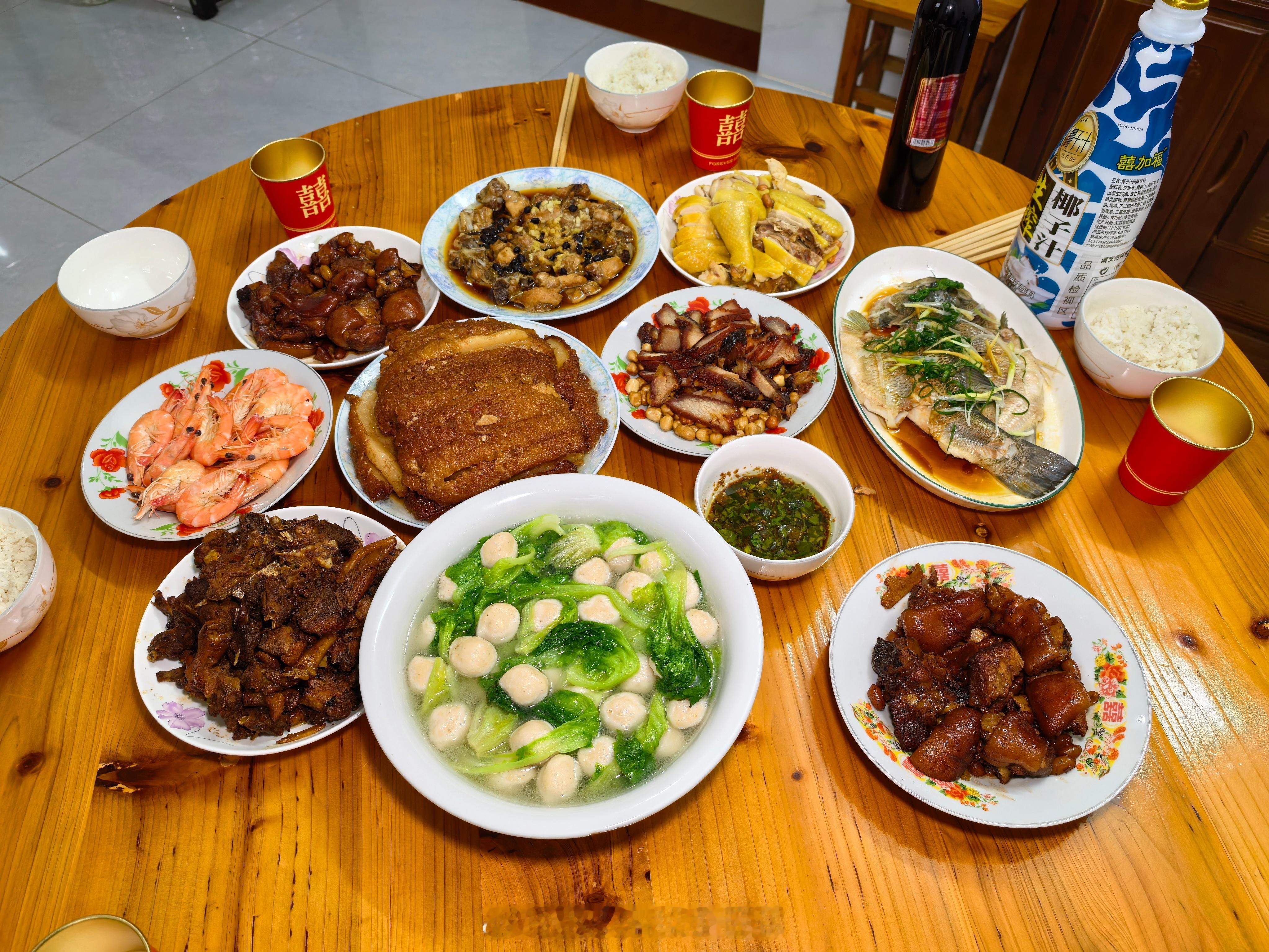 除夕啦,开吃年夜饭,先祝粉丝们新年快乐,给大家晒晒我们广西的年夜菜肴~妈妈做的扣肉、白切鸡、酸甜猪脚,是我最爱吃的,每年必吃~ 我们两广这边的年夜饭主打就是新鲜硬菜,吃起来才够满足!