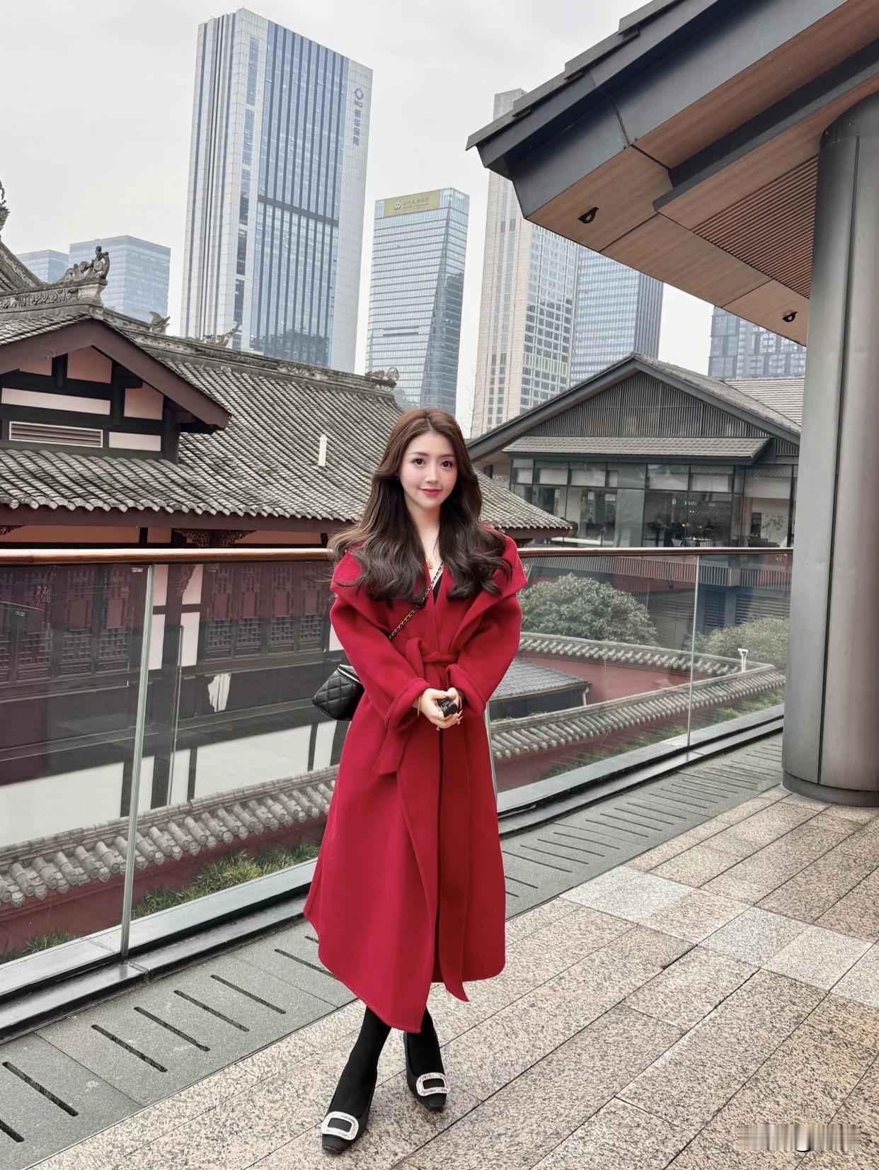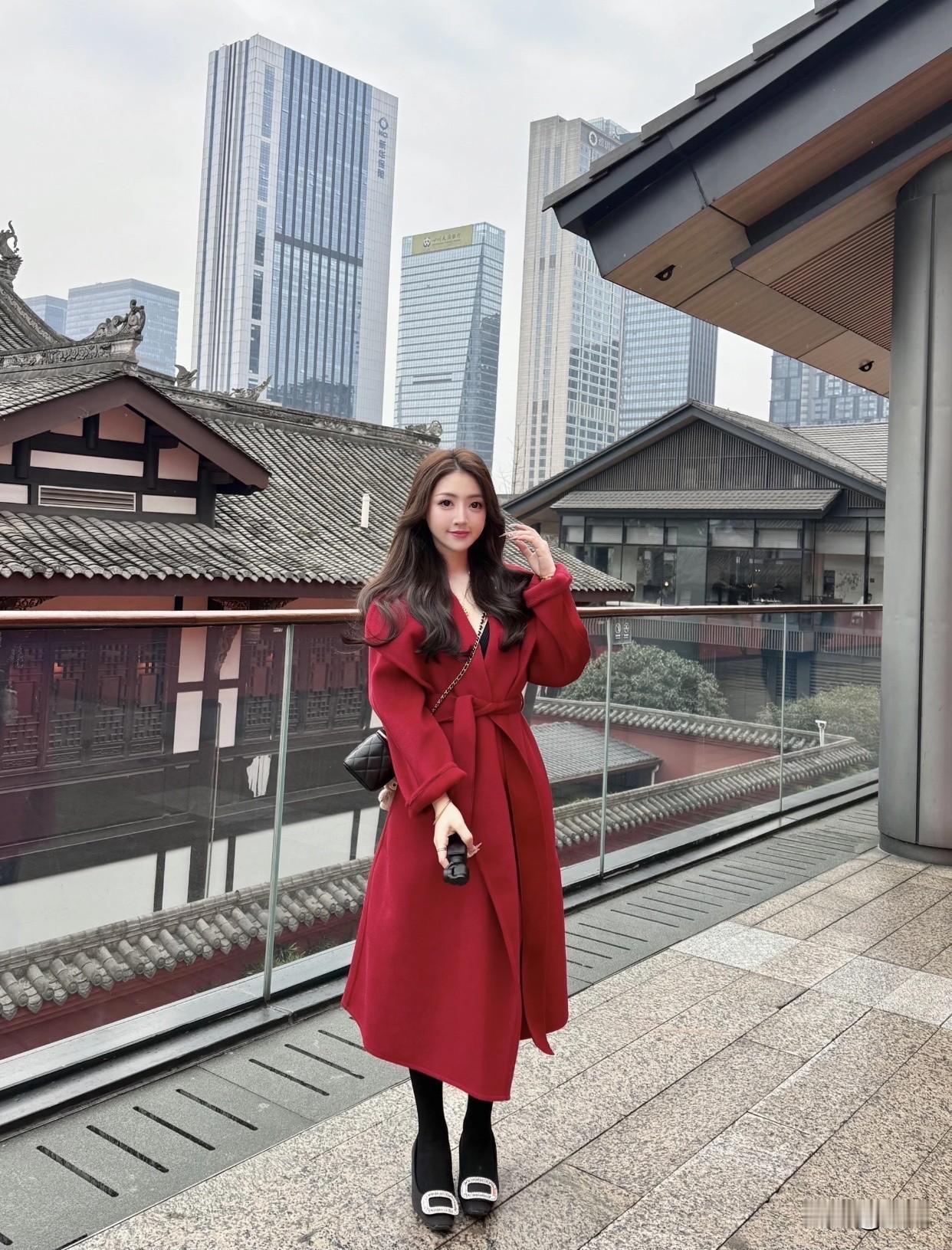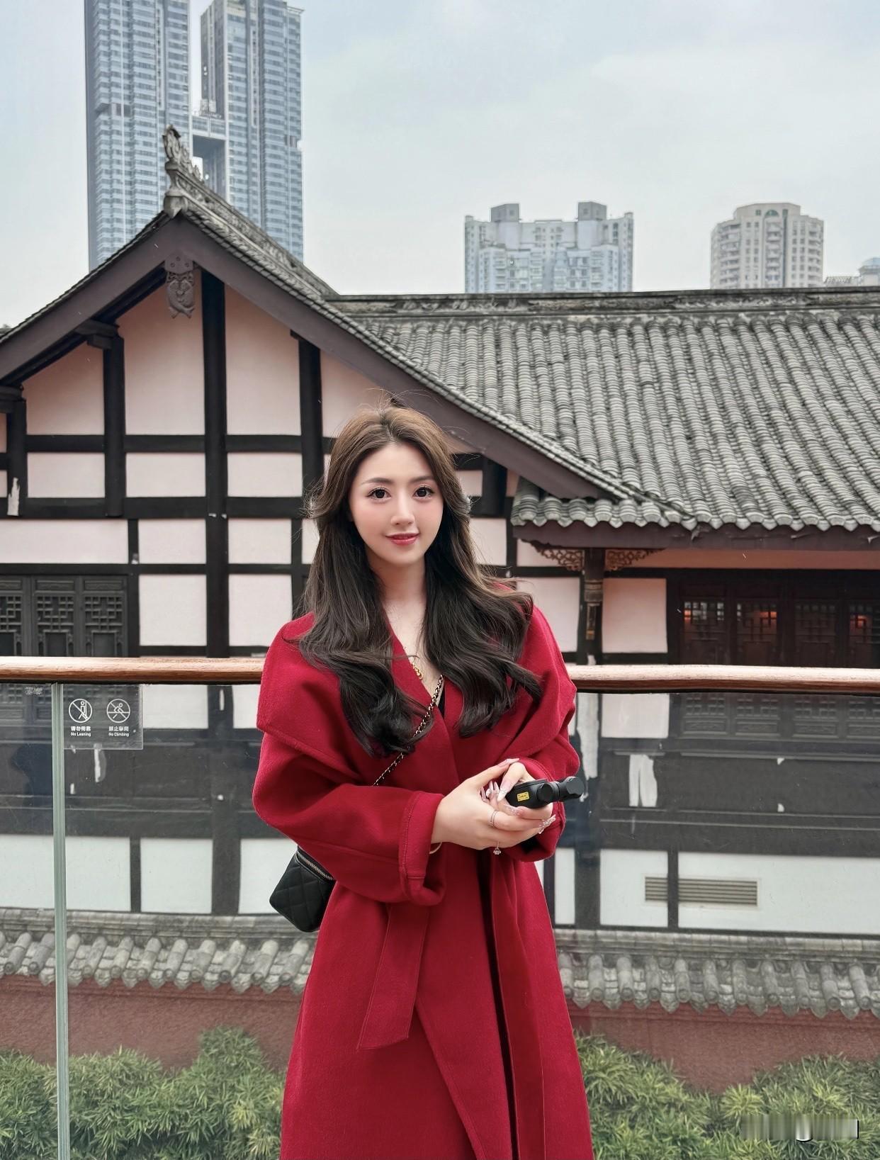 高级感穿搭,温柔风穿搭。红衣美人倚栏,古韵今风共映。