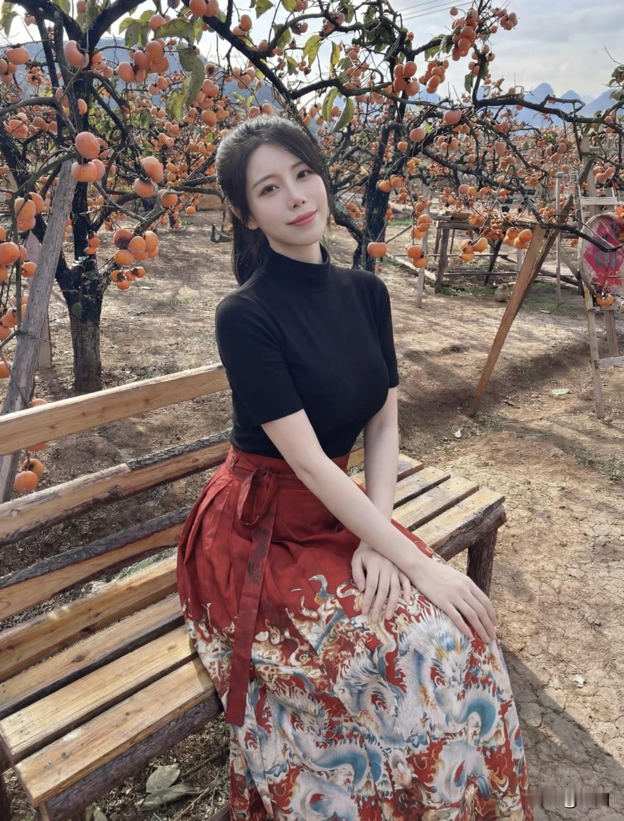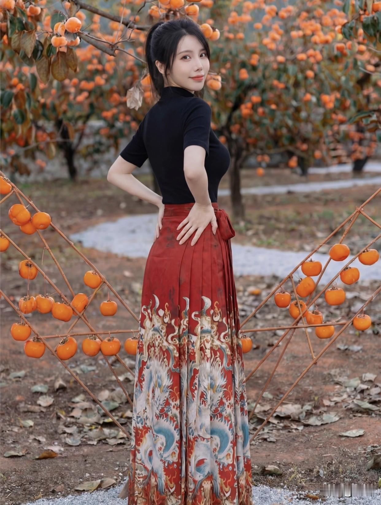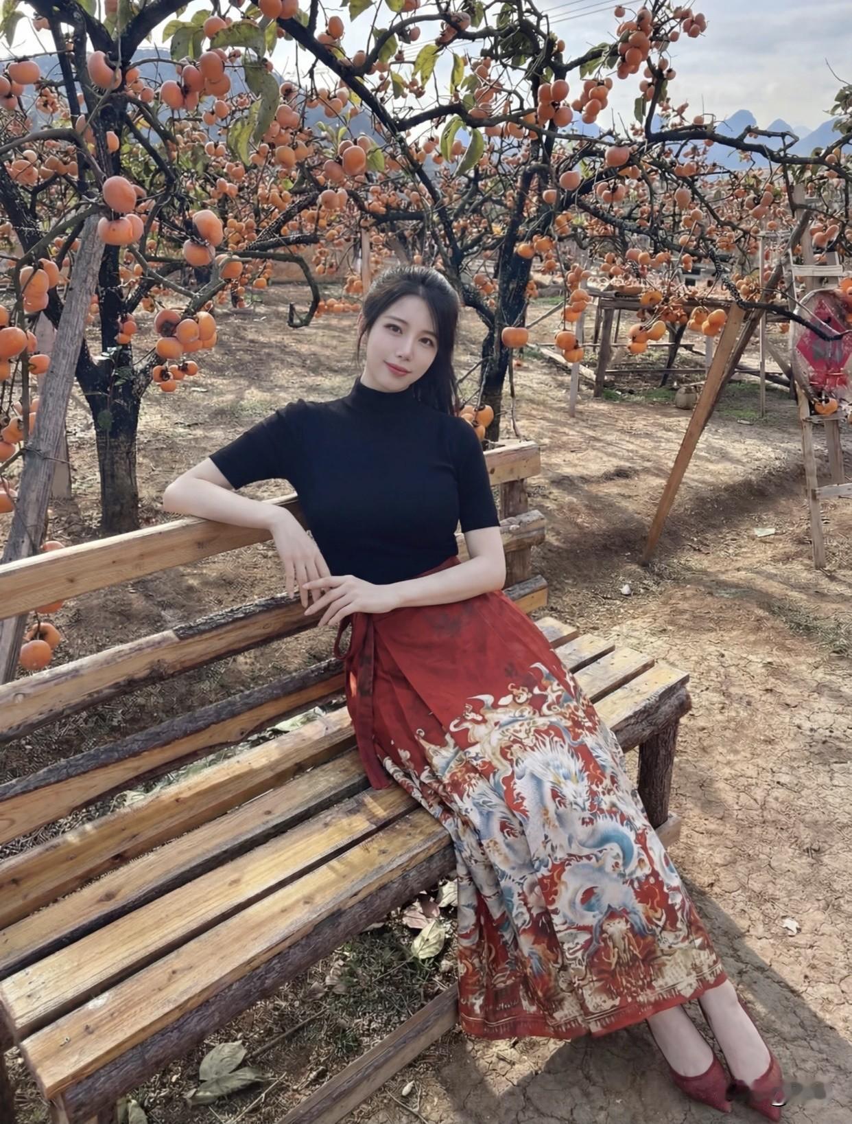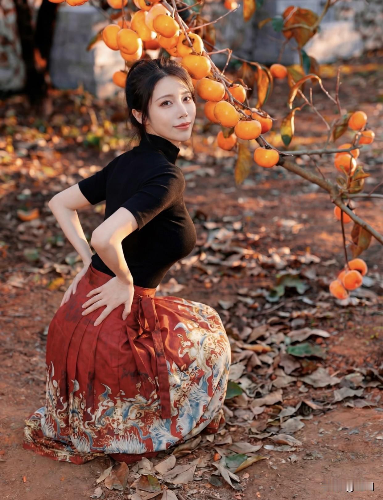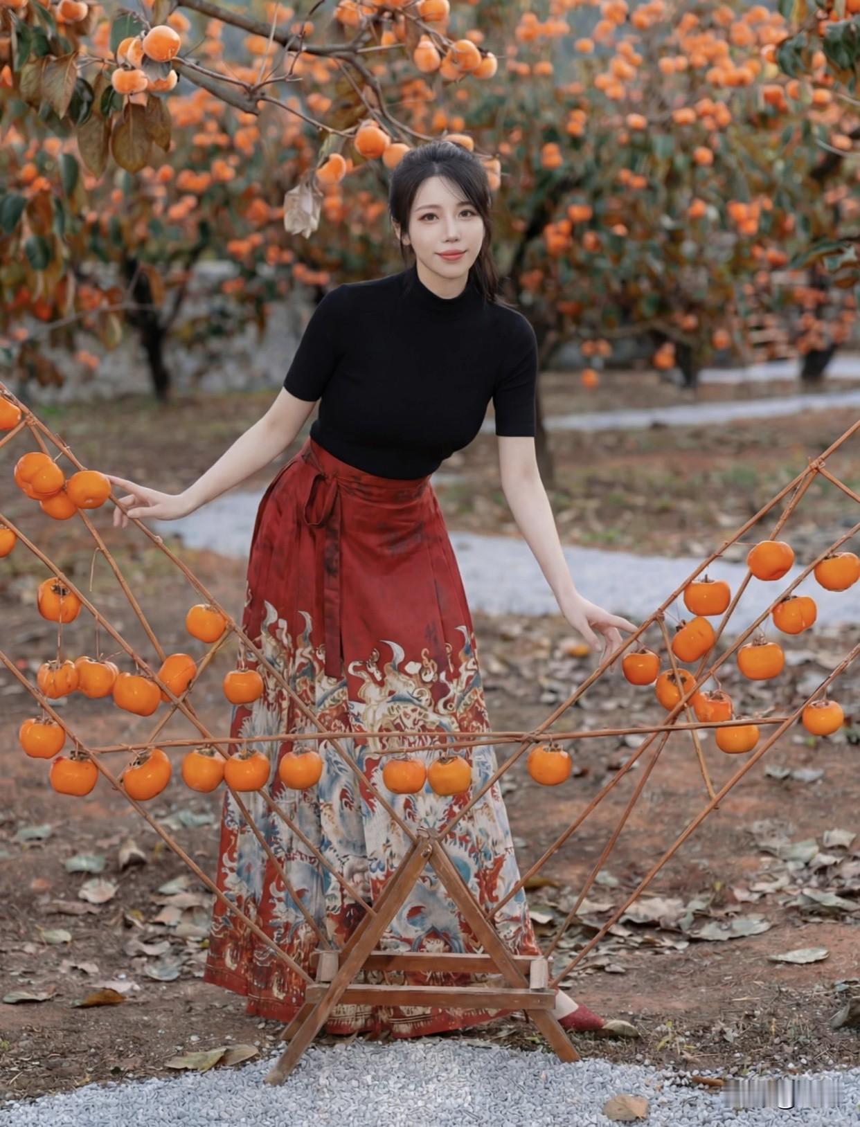 有哪些时髦的国风服装呢?年年岁岁柿柿红!秋日果园里的甜美少女🍂🍎