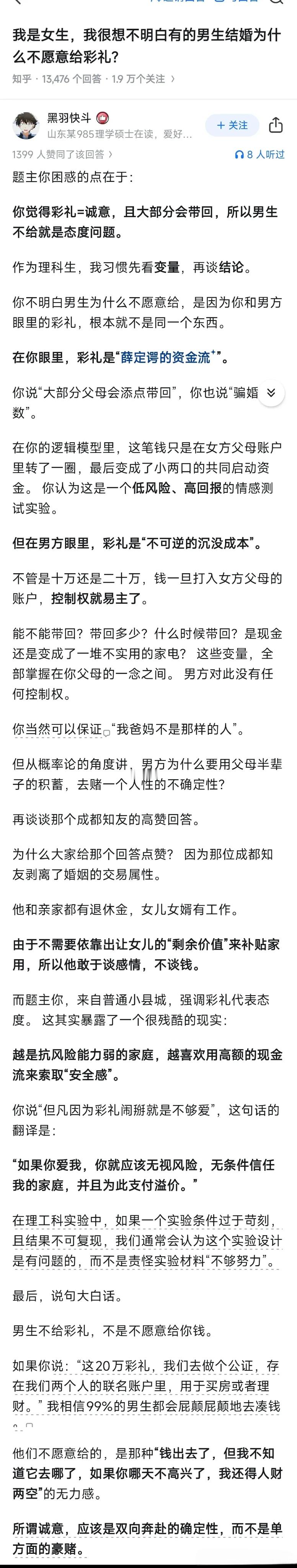 第一次见把彩礼分析的这么透彻的,不过最后一句话才是重点!