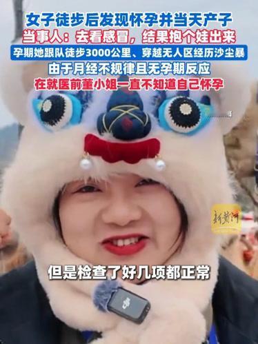 女子徒步3000公里后发现自己竟然怀孕并顺产,这一奇迹引发了广泛关注。 女子董小姐在新疆“东天山来的骆驼队”中徒步3000公里后发现自己怀孕并当天顺利产下一名男婴,这一事件引起了广泛讨论。董小姐称,她在2月13日因感冒就医时才发现自己怀孕,孕期长达139天,期间她经历了老君山的攀登和驾车被追尾的事故。医生表示,她未做产前筛查,在孕期高强度徒步存在风险。尽管如此,母子平安的消息还是让人感到惊叹,网友纷纷点赞,感叹生命的韧性与奇妙。