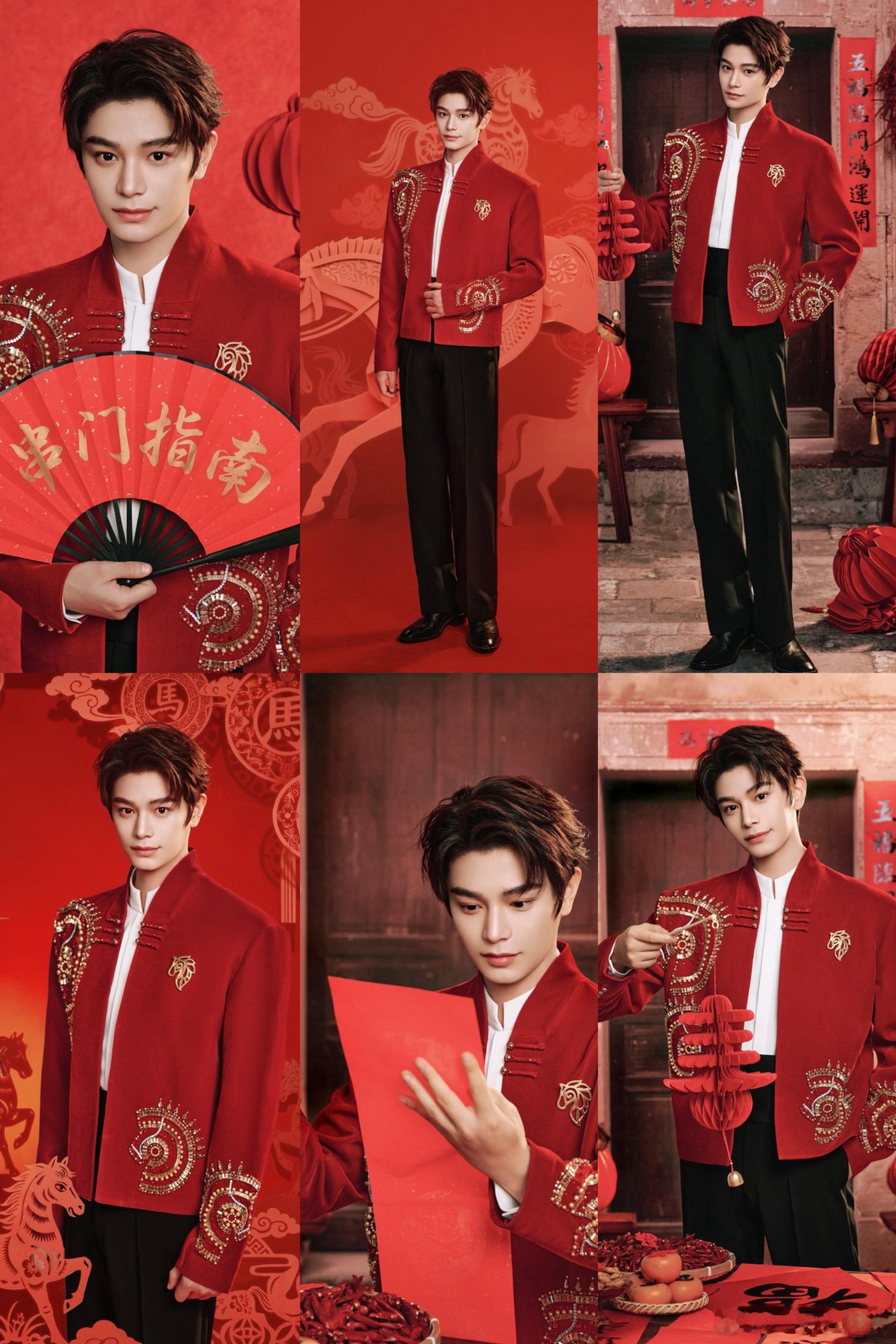 丁禹兮工作室春晚造型出图很符合国人喜好新中式,红色烫金中山外套!