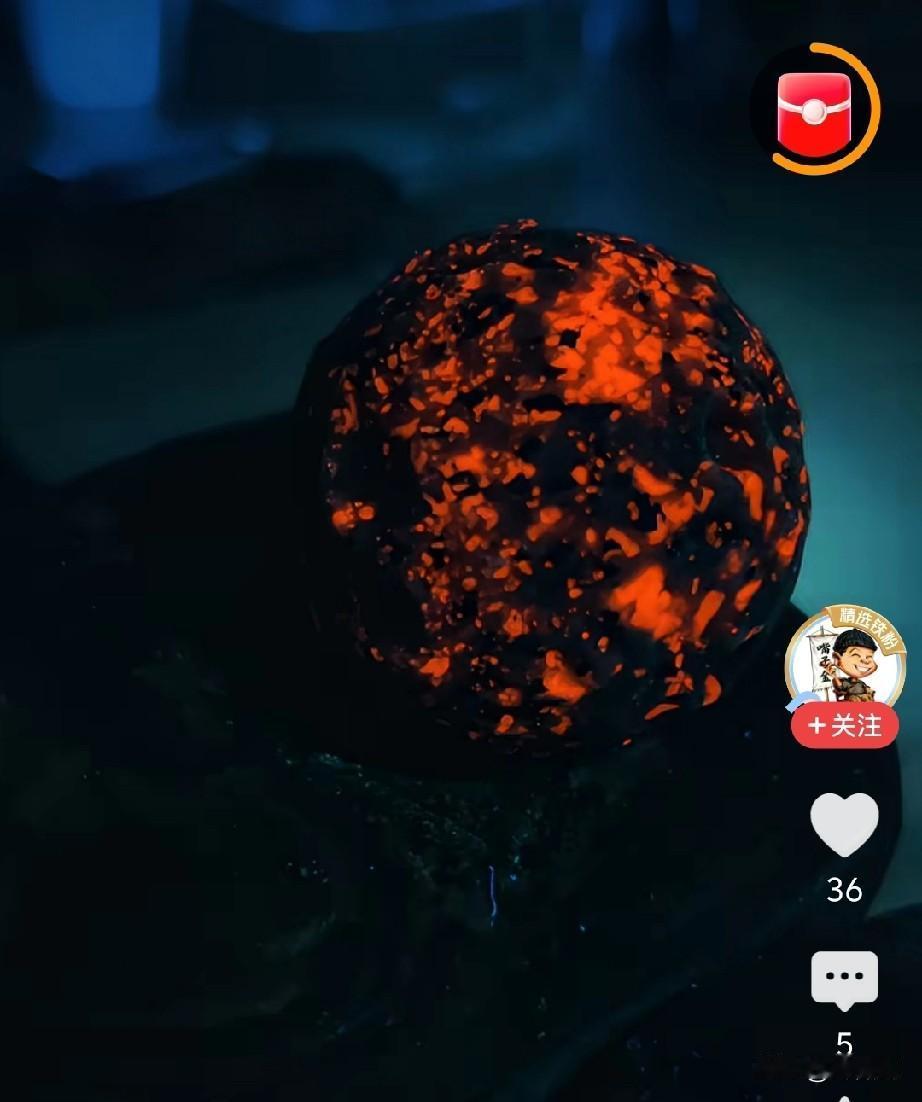 这个平平无奇的石头,打眼看去 就像河滩里的普通石头,可是晚上却会发出火山一样的光