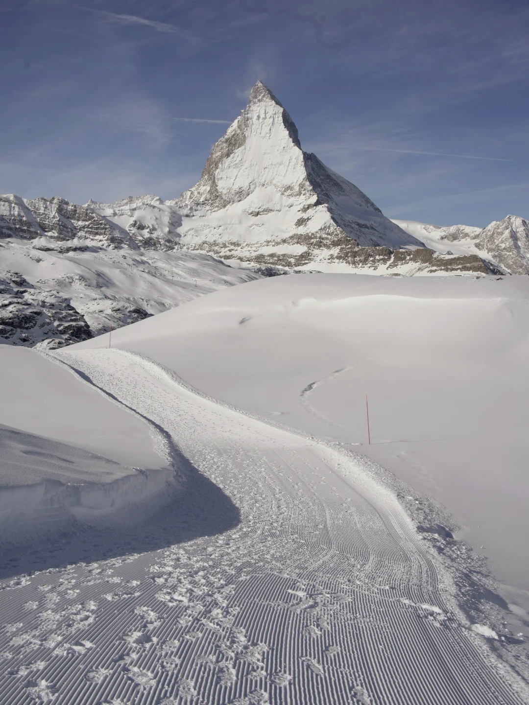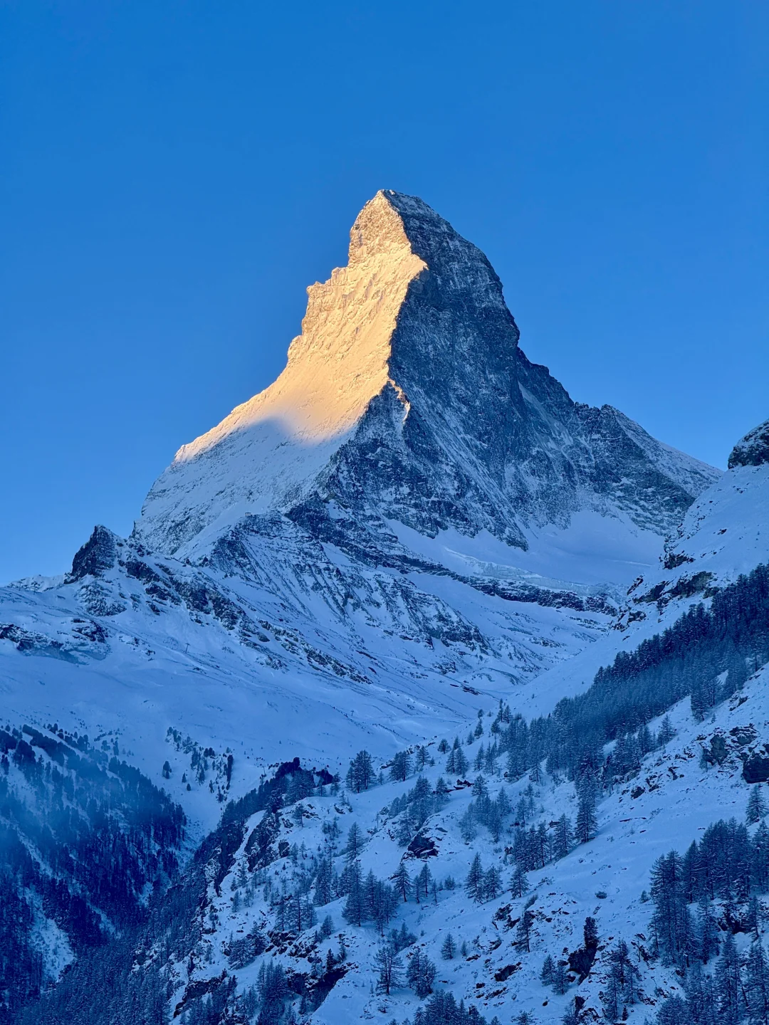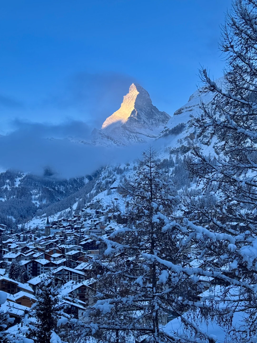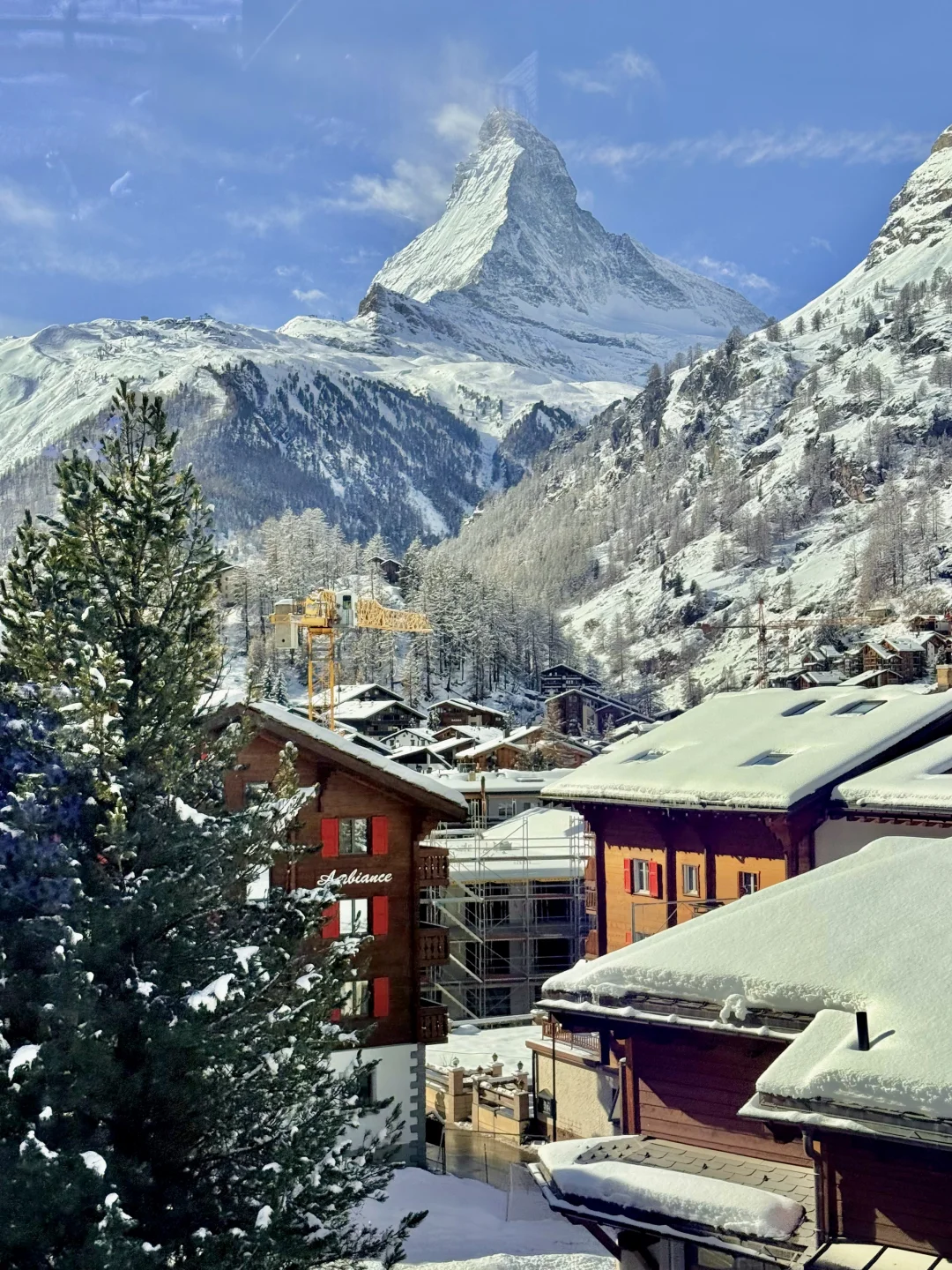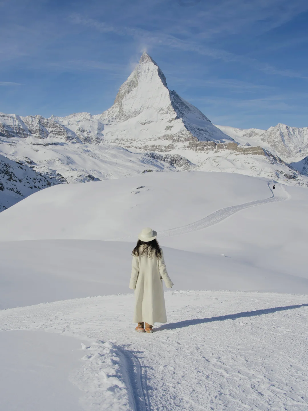 从国内坐了十几个小时飞机,又转火车,花了一整天的时间到达采尔马特小镇,迎接我的,是刚下完雪晴天的马特洪峰。