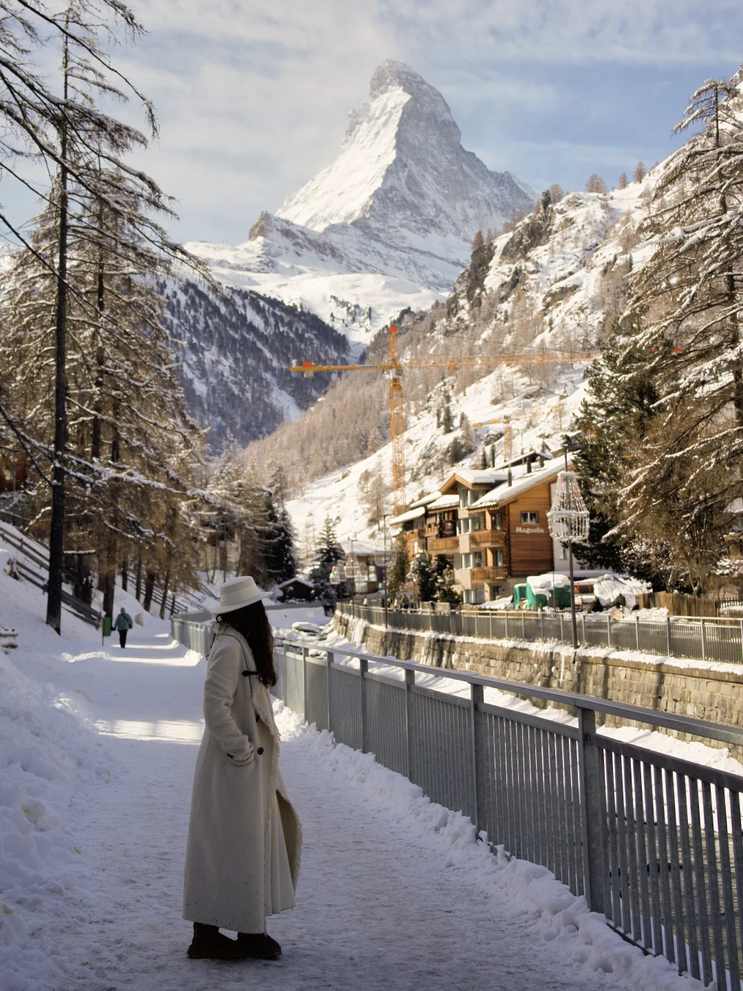 ✔️镇子最好的机位Viewpoint Matterhorn,可以搜下路线,火车站走过去大概15分钟,最后一段要爬楼梯,很累。