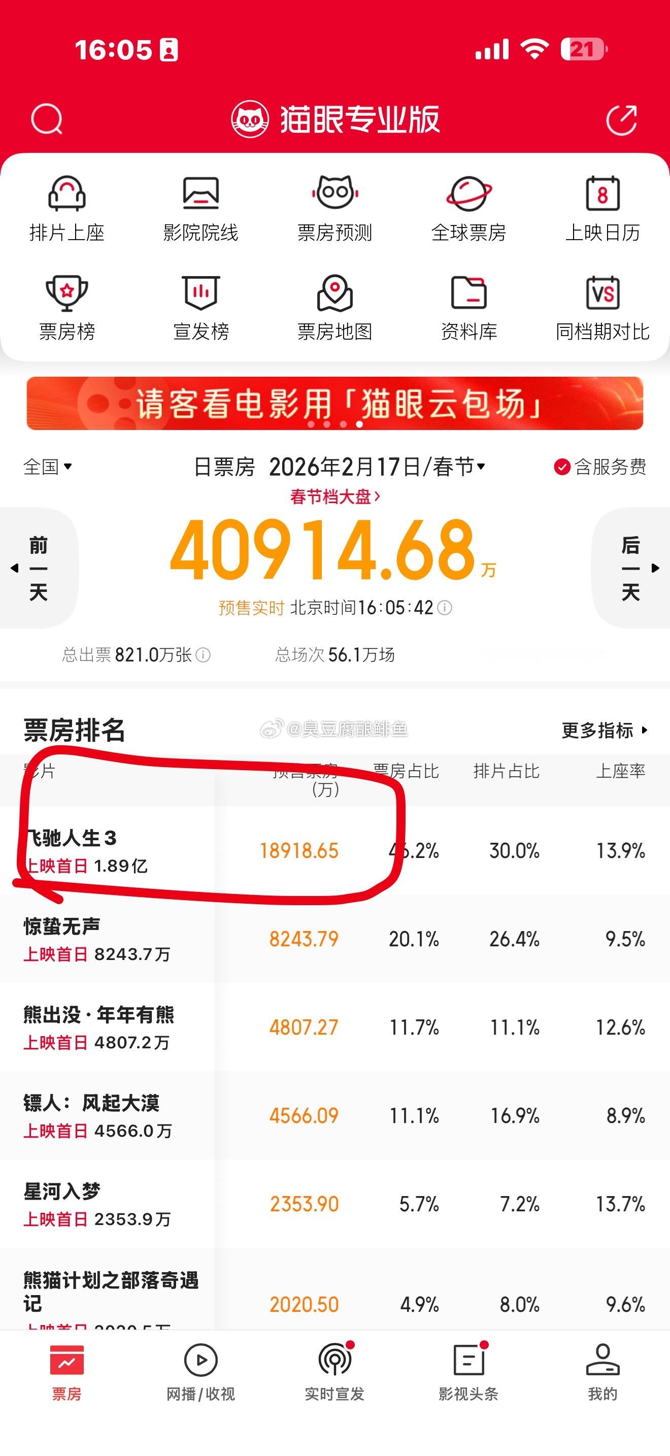 电影票房 截止16:00飞驰人生3预售票房断层第一现在再看姐妹的抵制。韩寒每次电