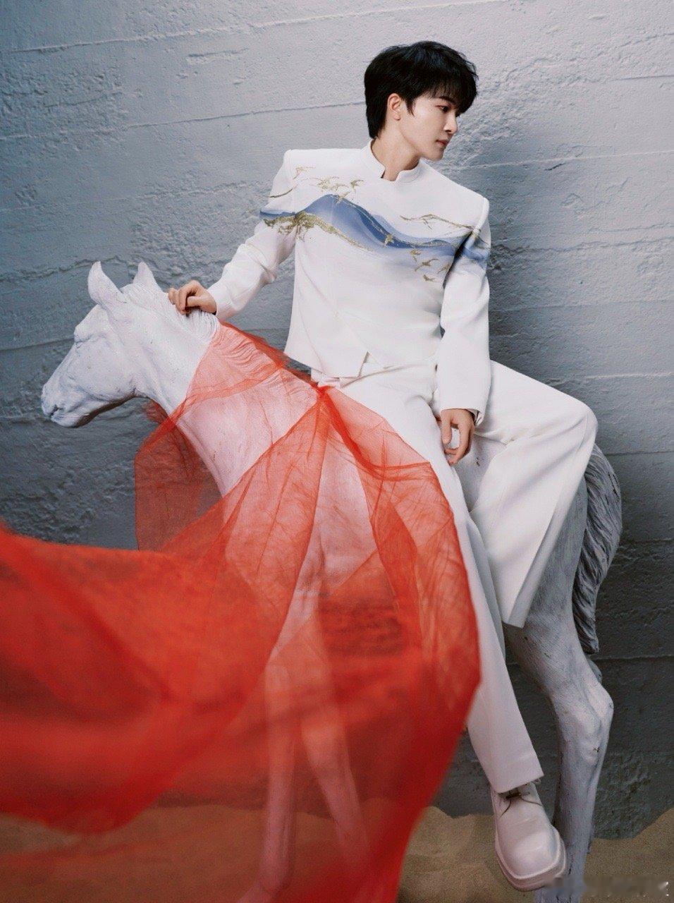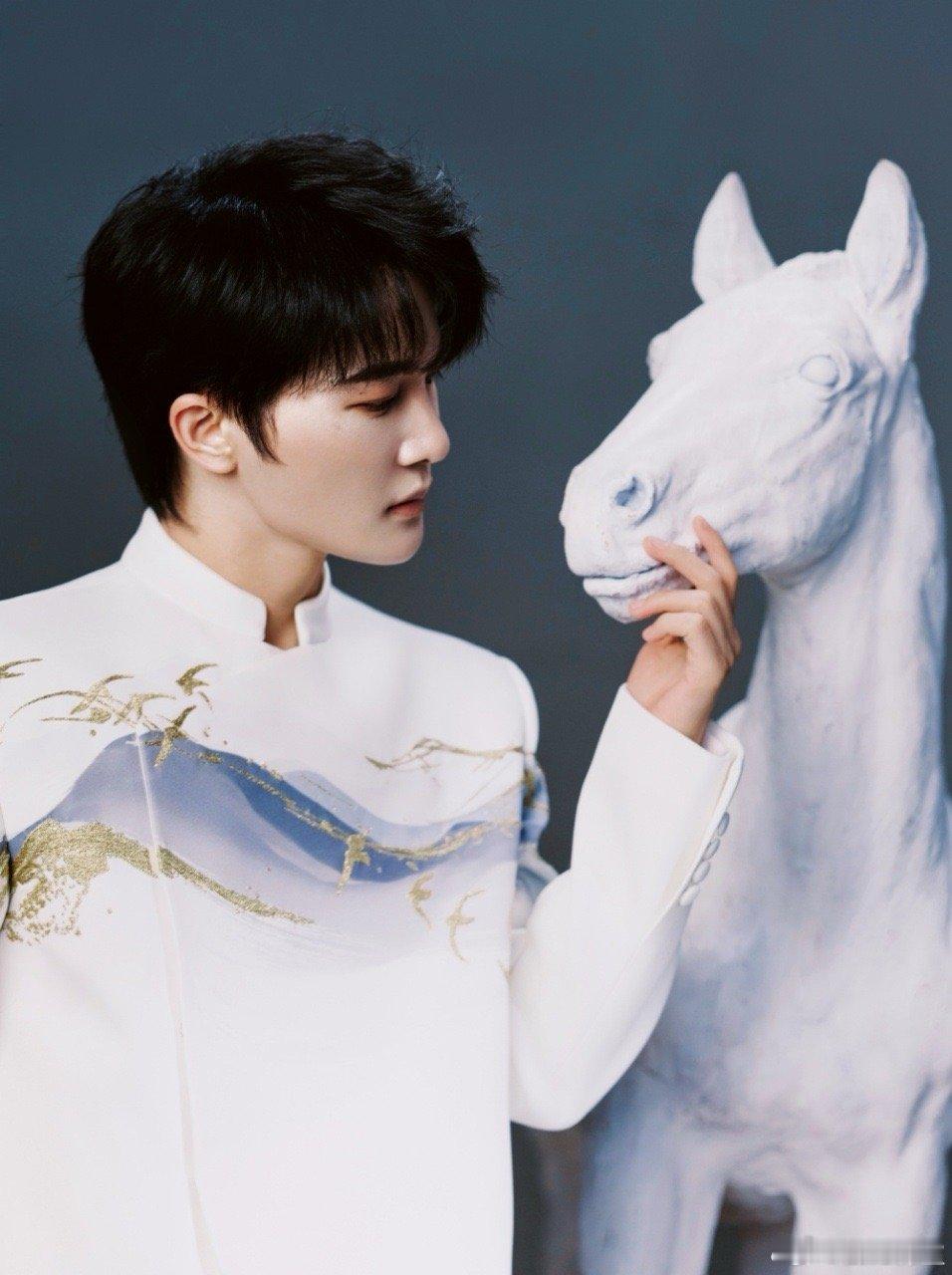 周深马年骑白马 周深春晚出发图🈶️。唱《山海经》的《吉量》,出发图也是跟白马拍