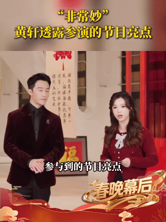黄轩马年春晚剧透黄轩在采访里剧透了自己的节目,“我觉得我们的节目亮点非常妙,把安