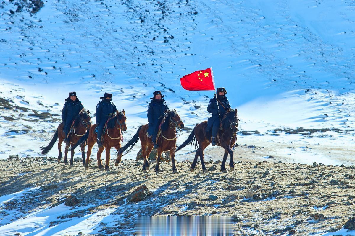 图为卡昝河边境警务站巡边踏查分队高举这面特殊的五星红旗开展巡边踏查。