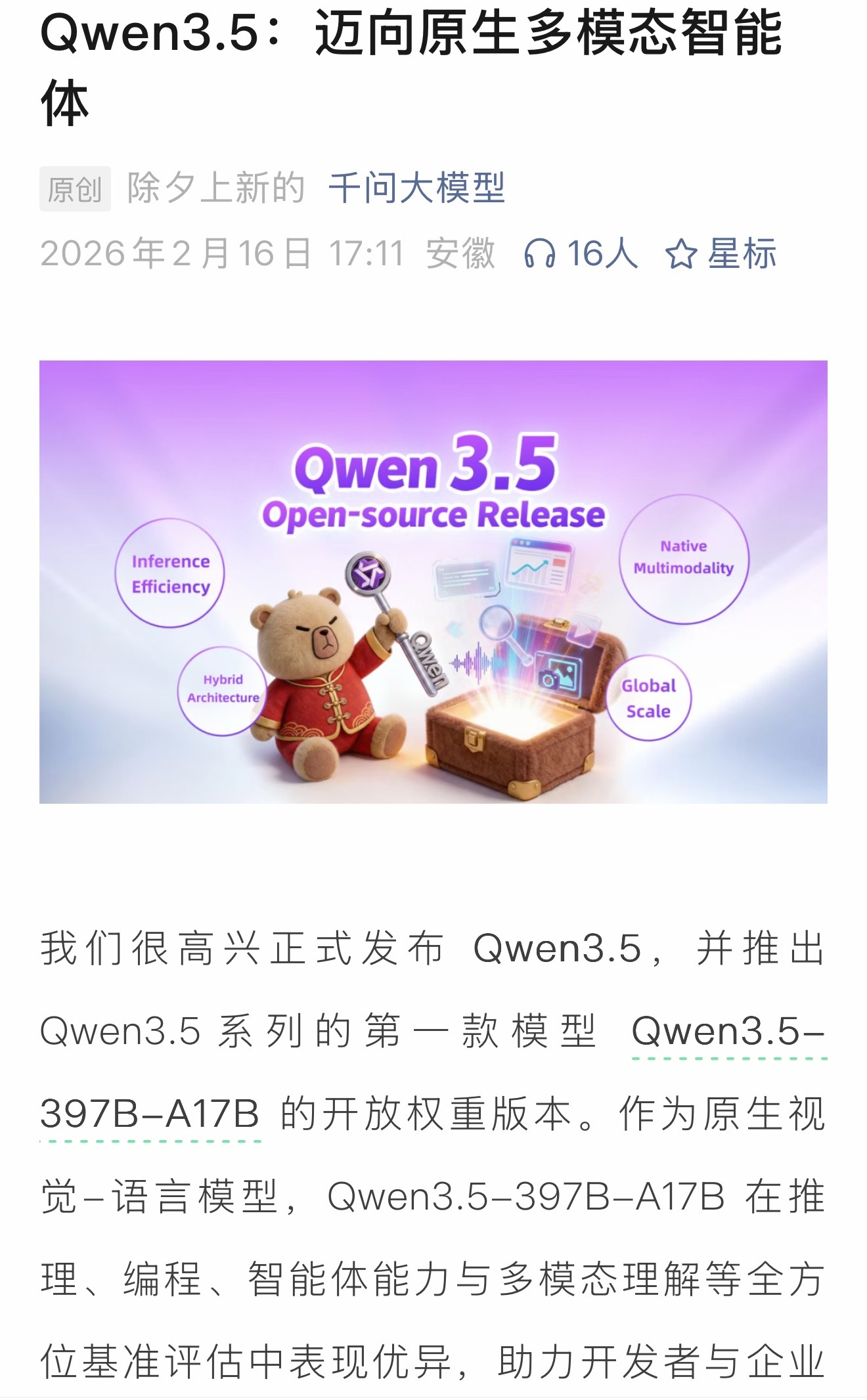 千问Qwen3.5大模型发布喜大普奔!延续去年除夕开源Qwen2.5-Max的传