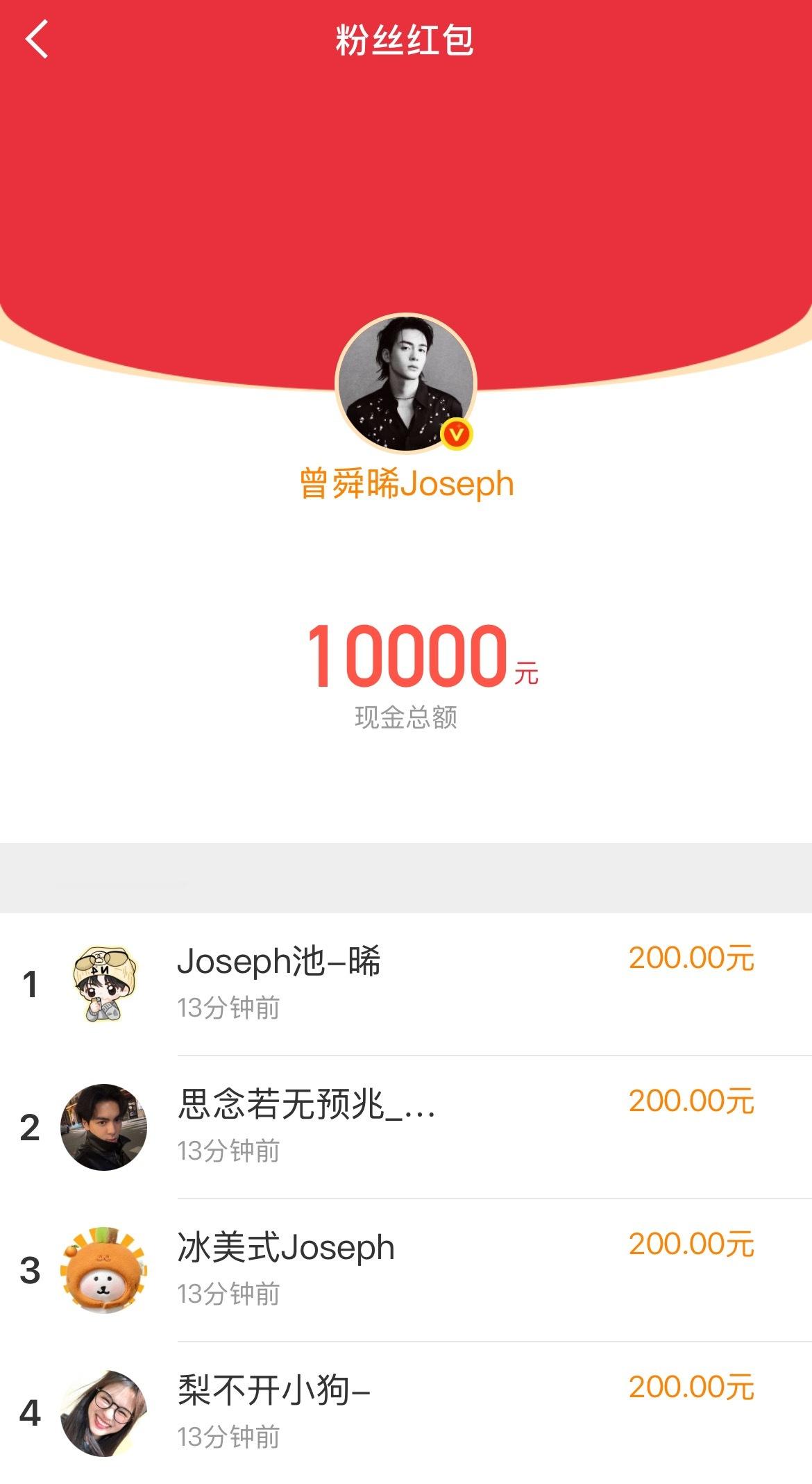 曾舜晞钻粉人均200红包