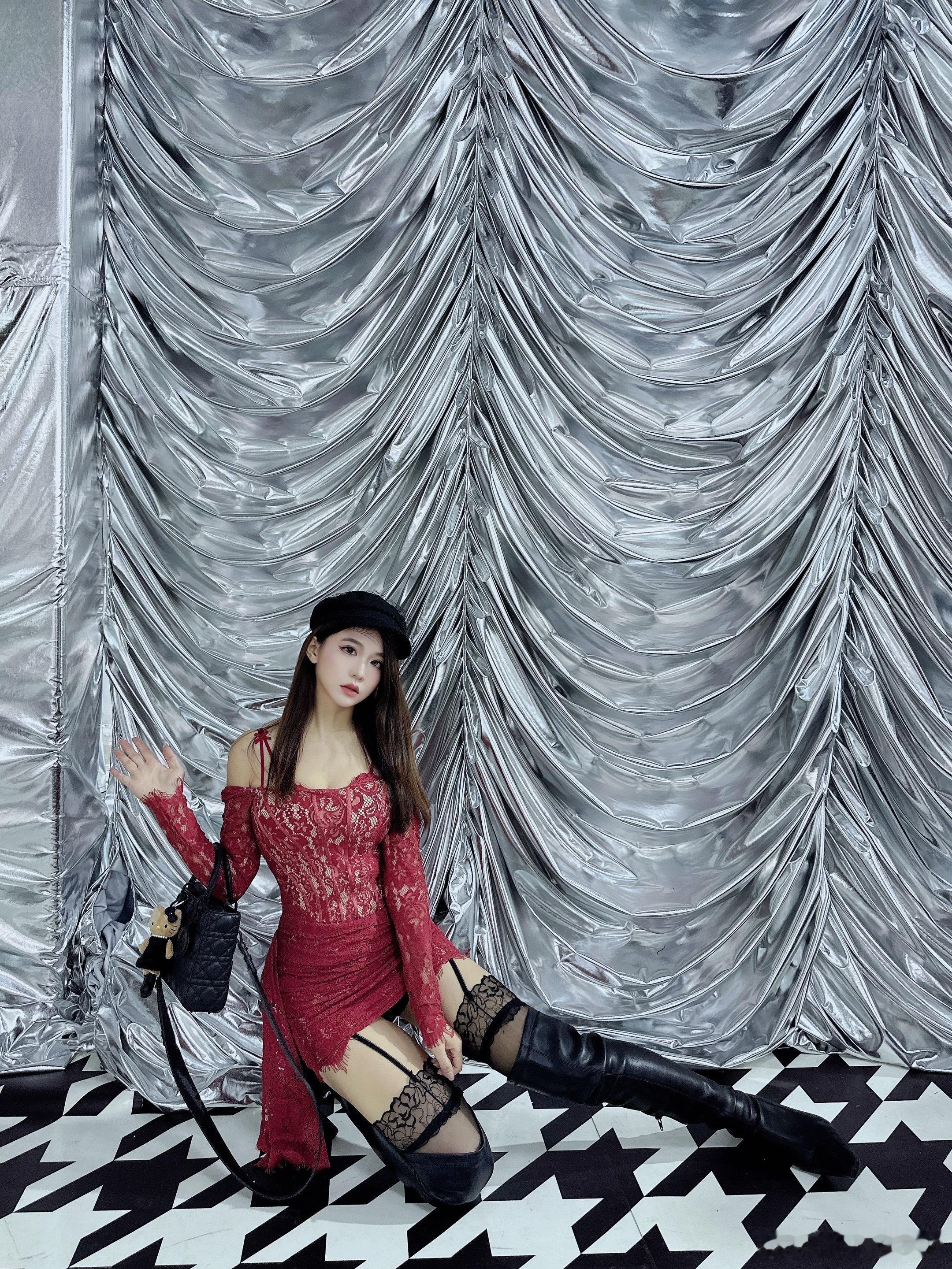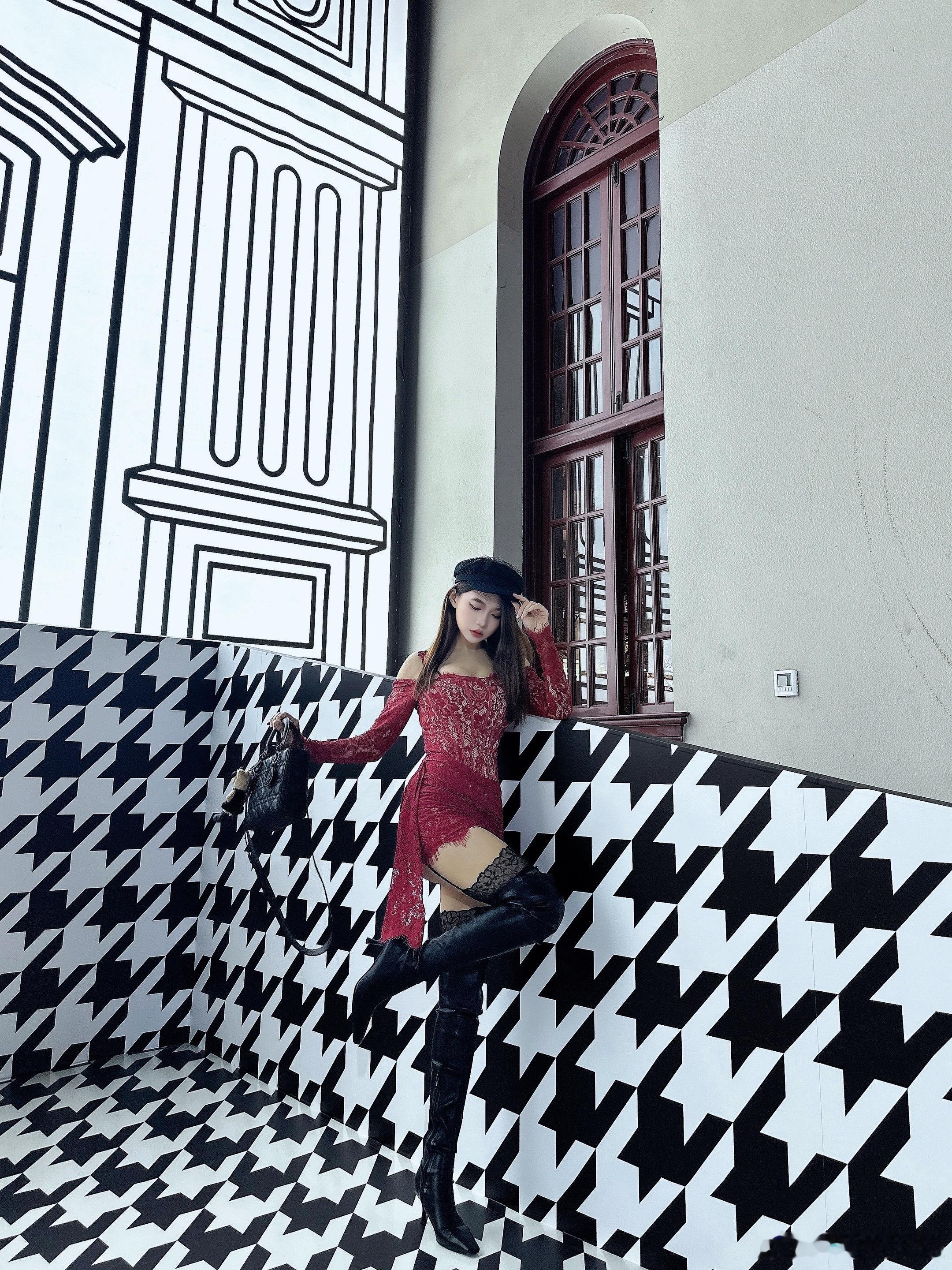 红裙➕黑色过膝靴👢甜酷拽姐⬆️日常分享