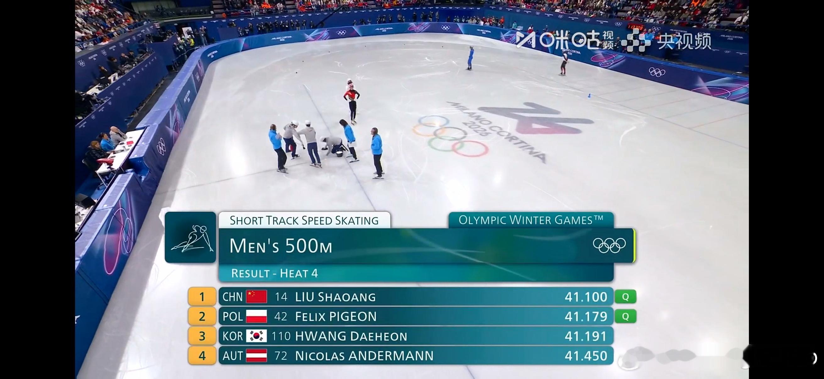 冬奥短道速滑男子500米预赛刘少昂41秒100小组第一,晋级500米1/4决赛黄