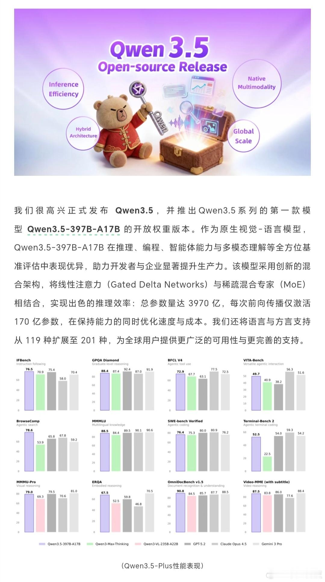 千问Qwen3.5大模型发布没想到今年除夕夜,阿里又整了一波超硬核的「AI年货」,直接开源新一代千问大模型 Qwen3.5!