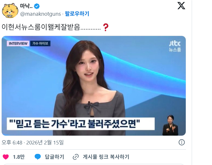 推特反应火热的李瑞,出演JTBC《NEWS ROOM》粉丝感叹很想一位好看的新闻主持人