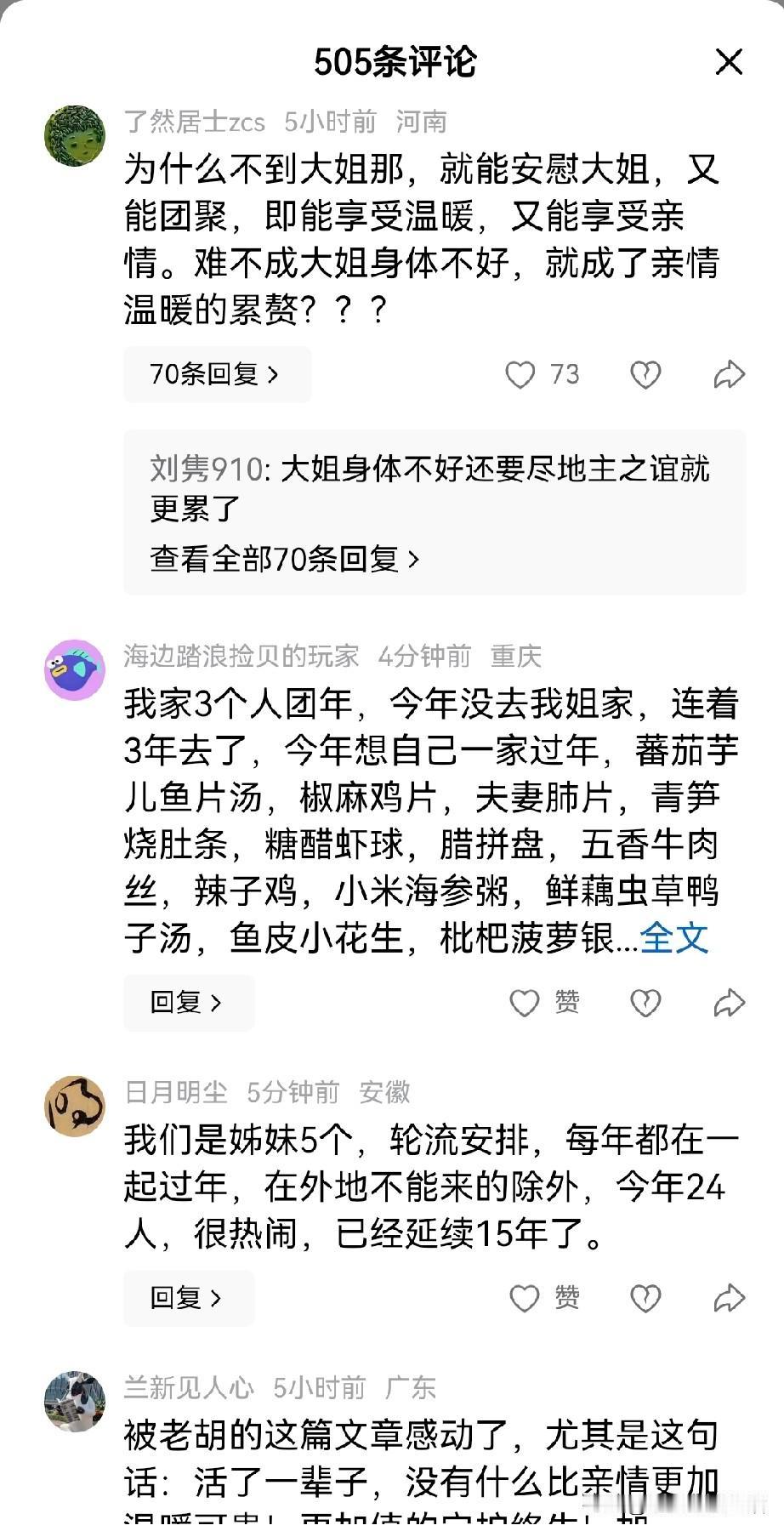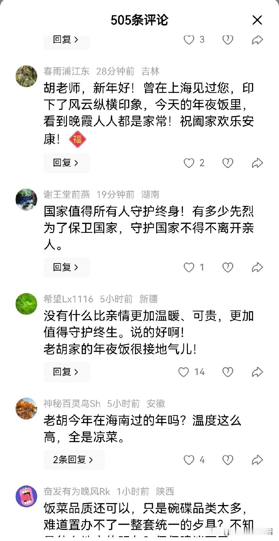 很多人本来想怼老胡的,但是看到他发的这篇微头条,想想还是算了。 有点还是没想明白老胡为什么今年这样安排。 在这新春佳节之际,谁不想听几句吉祥话,也没几个人愿意在这样的时间去开骂吧。 老胡能够把亲情和传统看的这么重要,说明他骨子里还是认同很多传统文化的,发表那些激进的言论,也不知道是出自内心,还是被人安排的。 他发点这样的正能量的东西,还是会有很多人喜欢的,几十年积累的粉丝数,也应该能支撑自己的后半生了吧,想不明白为什么还要冒着晚节不保,也要在很多大是大非面前发表几句让人生厌的言语。 或许这才是真老胡吧,总喜欢哪壶不开,提哪壶。大佬也要靠话题,博点眼球? 对于老胡今年春节的安排,在很多地方应该都是父母不在了,长兄如父,由家里的男丁接手后续家里聚会,特别是清明、春节给父母上坟的时候,一定要家里的男丁进行招待的。不知道家庭条件不错的老胡,没有接过父母的接力棒,让自己家的妹妹操办自己家族的聚会。 还有就是他们过年会不会去祭拜自己的父母呢,是不是有些地方只在酒桌上追思即可?