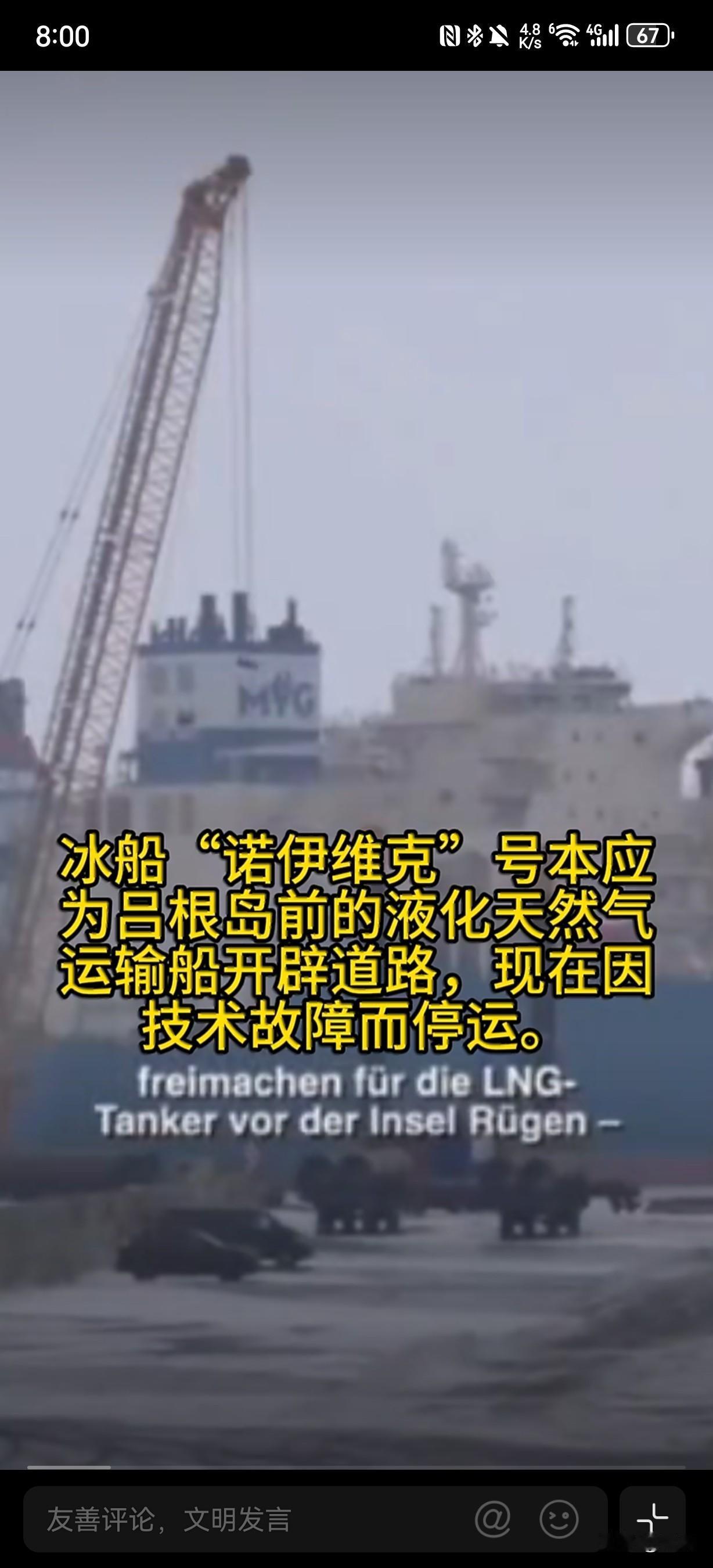 德国被冰封住了! 派去救LNG船的诺伊维克号破冰船,刚干几天就故障趴窝,自己先回港修去了。 载着17万吨LNG的巨轮,在穆克兰港外被厚冰堵了超两周,进不来、卸不了。 德国最大LNG进口基地停摆,天然气储量已跌破24%,寒冬供气告急。 俄媒笑麻:我们核动力破冰船能秒解,但你制裁不让用啊 ! 瑞典芬兰有船可借,也挡不住俄罗斯花式嘲讽——能源独立,立在冰上了。