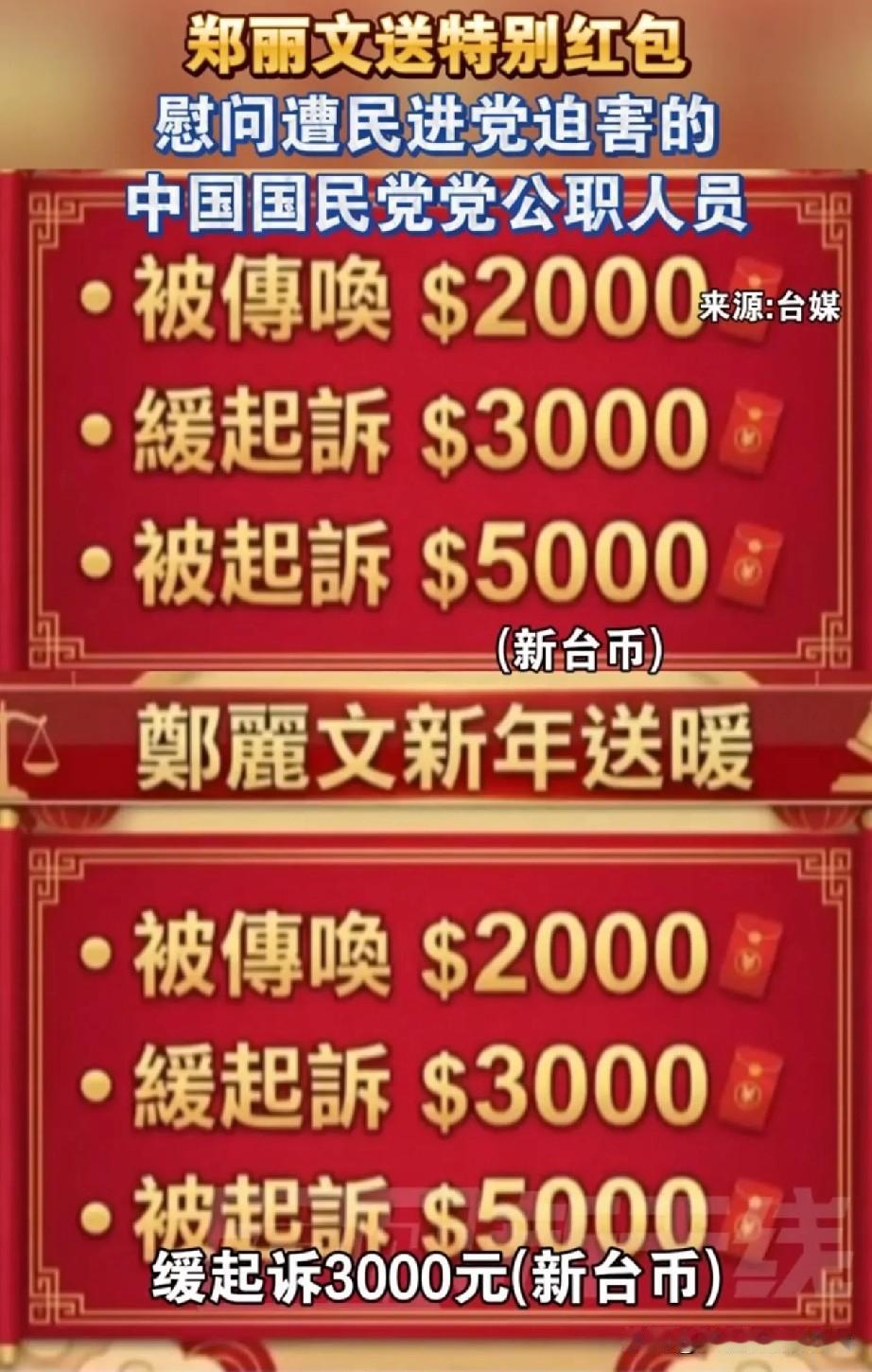 郑丽文不去锦上添花,而去雪中送炭,这样做真的该赞! 别人春节都在发春联、抢镜头、拼声量,只做讨好选民的表面功夫,郑丽文却把温暖送到最需要的人身上。她专门慰问被民进党司法迫害的蓝营党公职,按不同处境发放2000到5000元慰问金,还亲笔写慰问信,近200人收到这份心意,感动到破防。 钱不多,但心意最真。国民党被民进党没收党产、经费紧张,郑丽文依然记挂着为党付出、受委屈的基层同志。这不是作秀,是真正把人放在心上,让大家觉得“为党付出,值得”。 对比那些高高在上、只看选票的政治人物,郑丽文这波操作格局完全不同。她不搞花架子,专做雪中送炭的实在事,既暖了人心,也稳住了蓝营基本盘。这才是有温度、有担当、有底线的领袖风范,国民党中真的不多。