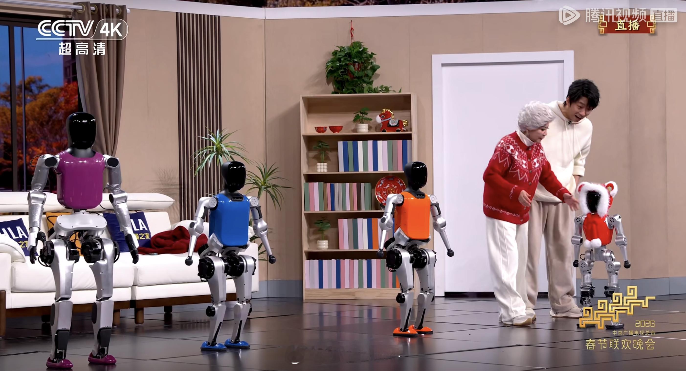 另外机圈职业病,一眼看到天放手上拿着华为三折叠、蔡明手上是华为Pura80 Pro+,还有松延动力的机器人,这组合很新潮~