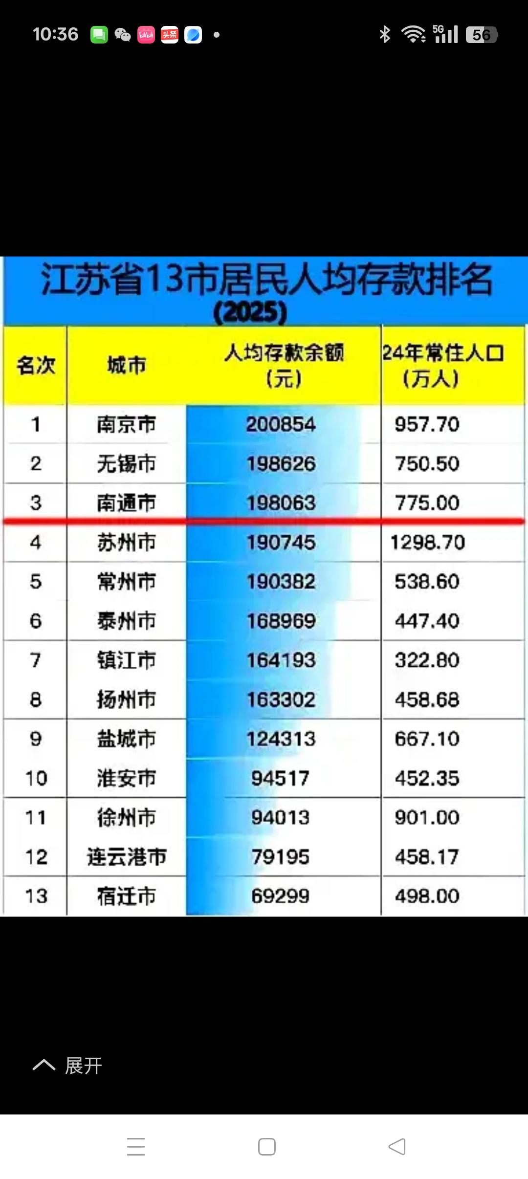 南通的人均GDP既不低于全省平均水平,南通的人均存款也不是全省第一!
